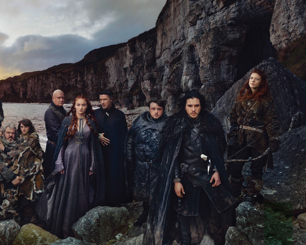 Description: A group of people standing on a rocky beach next to a body of water with a mountain in the background.