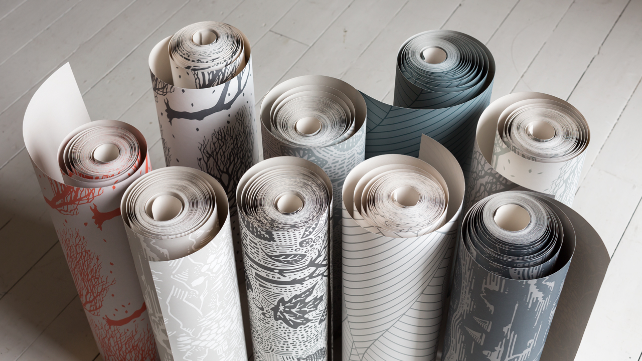 Description: A group of rolled up papers sitting on top of a white floor next to each other on a wooden floor.