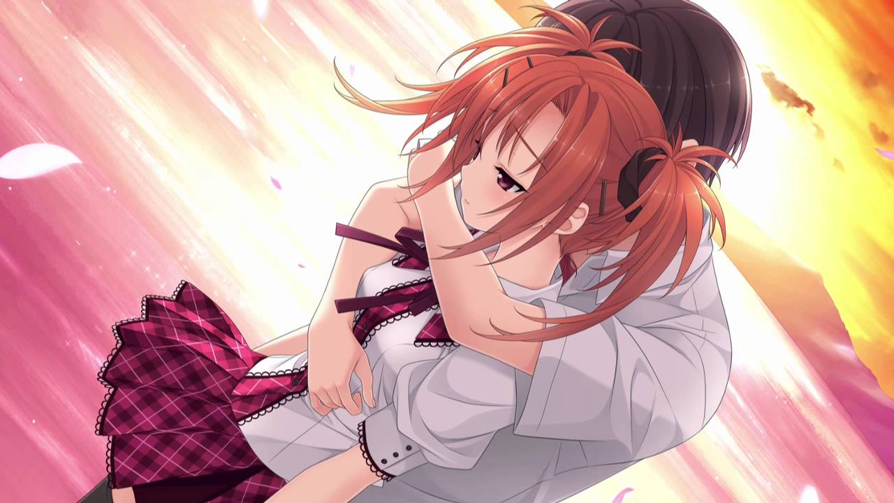 Description: A woman with red hair and a white shirt is laying on the ground with her head down and her eyes closed.