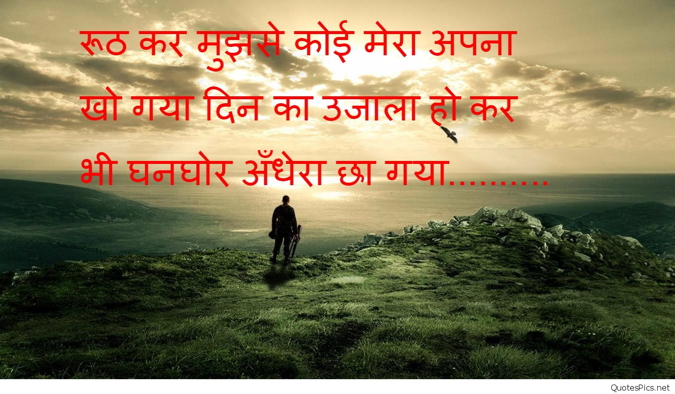 Description: A man standing on top of a lush green hillside under a cloudy sky with a quote written in a foreign language.