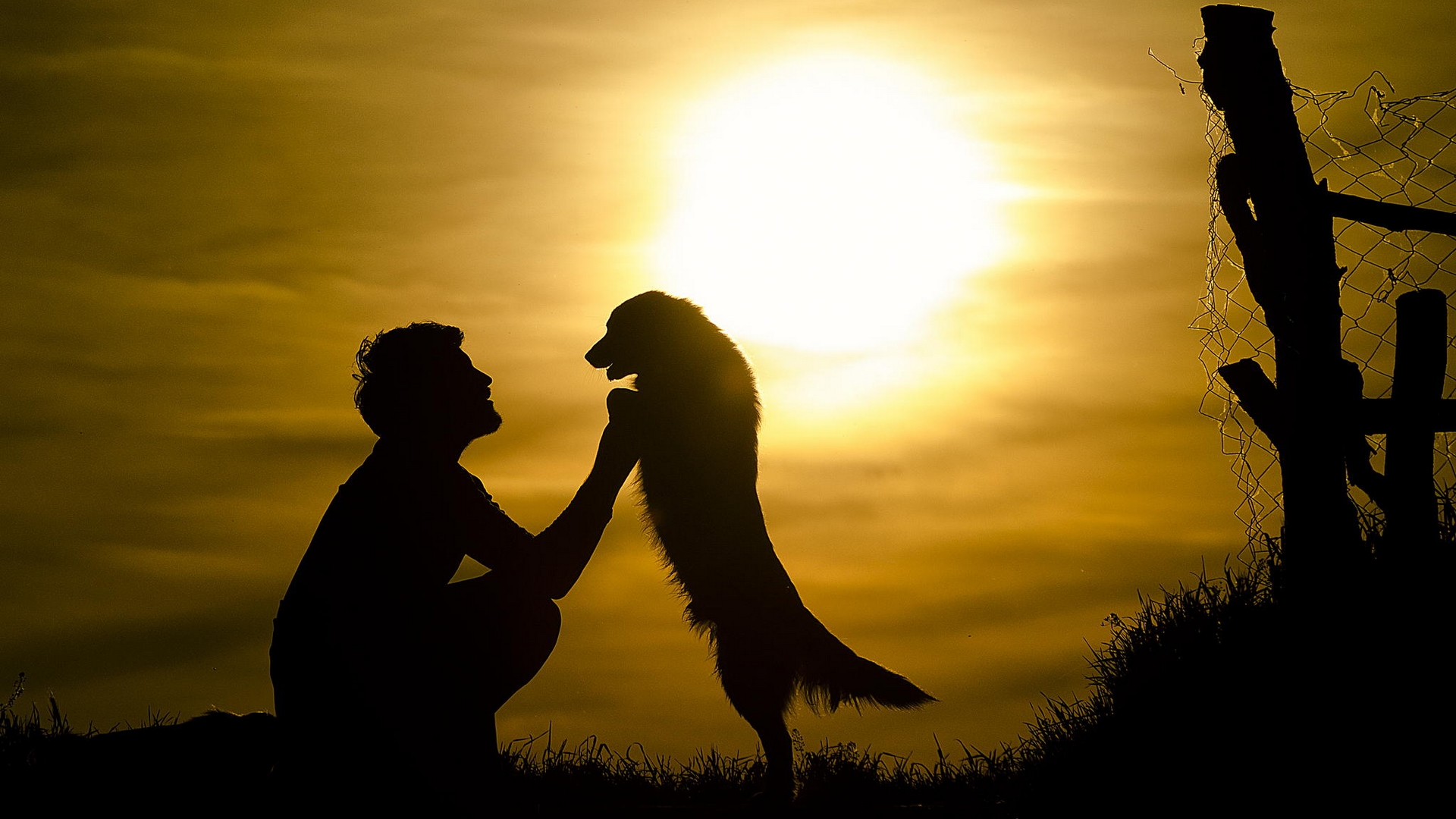 Description: A man and a woman are holding hands in front of the sun in the sky.