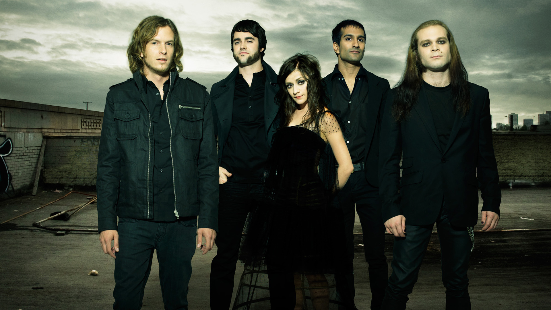 Description: A group of people standing next to each other on a roof top with a cloudy sky in the background.