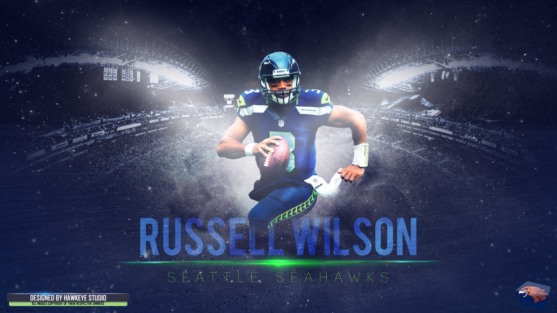 Description: Russell wilson wallpaper with a football player running on it's chest and a stadium in the background.