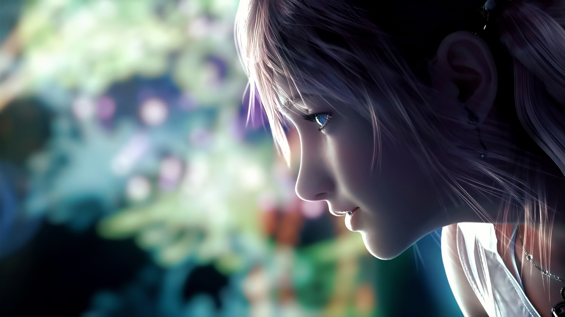 Description: A girl looking at a computer screen with a sad look on her face and a sad expression on her face.