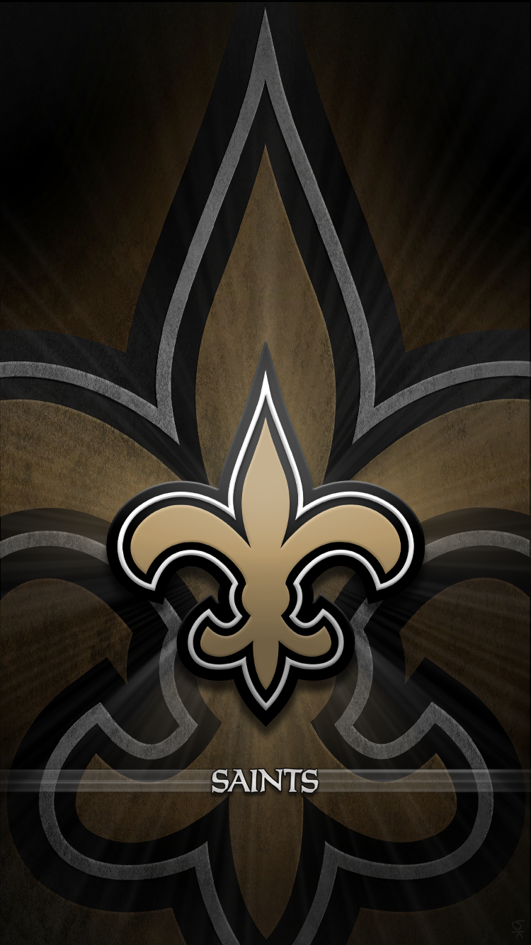Description: A new orleans saints logo on a black background with a gold fleur de lis design on it.