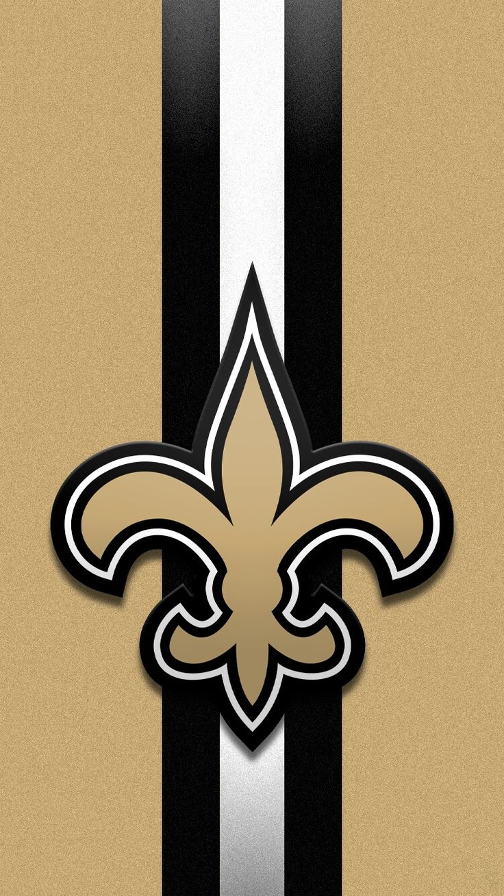 Description: A new orleans saints logo on a black and white striped background with a gold stripe and a black and white stripe.