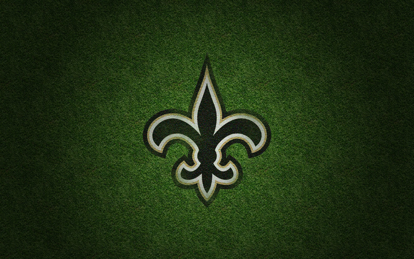 Description: A new orleans saints logo on a green background with a black and white fleur de lis symbol.