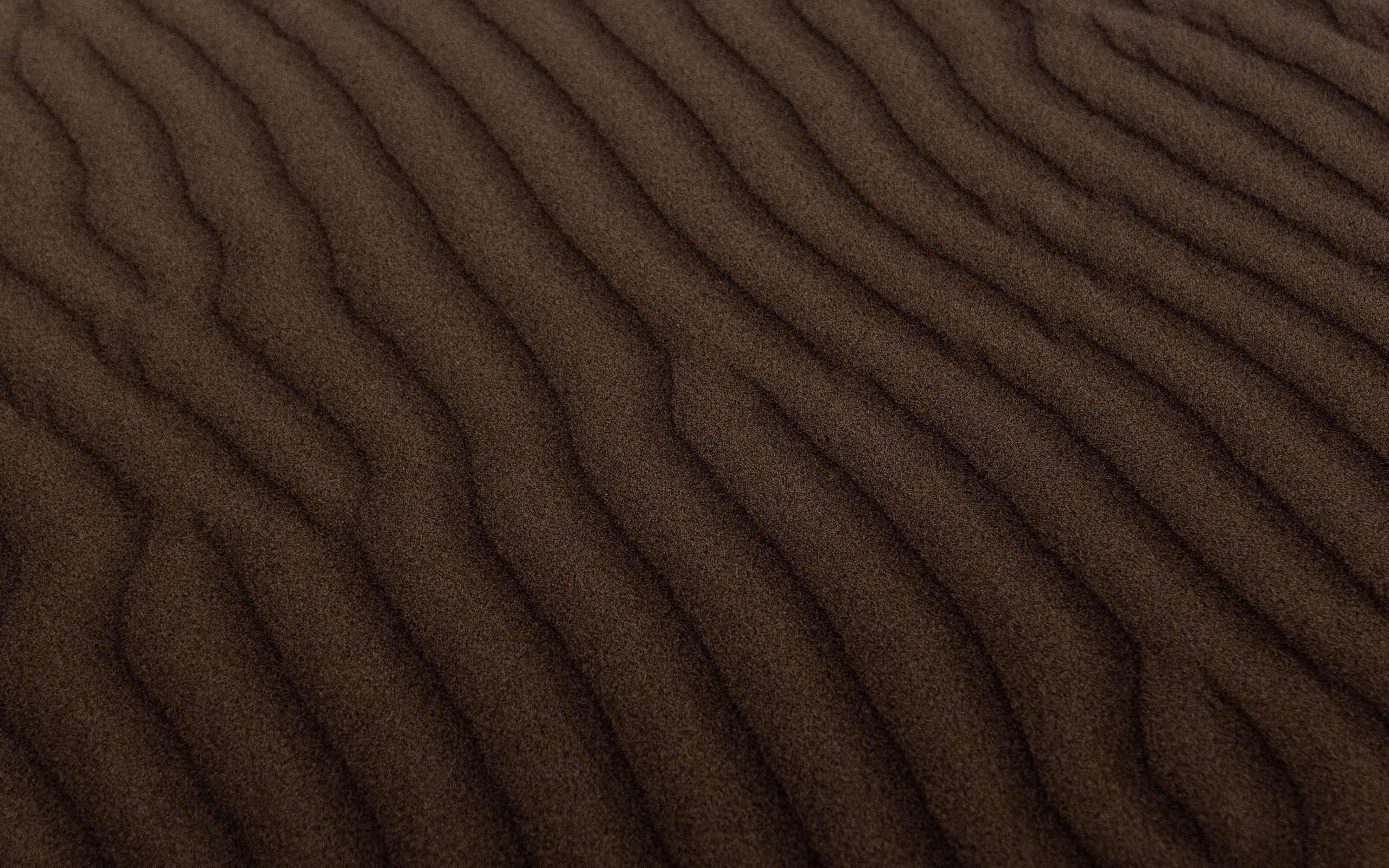 Description: A close up of a sand dune with a brown background and a small bird on top of it.