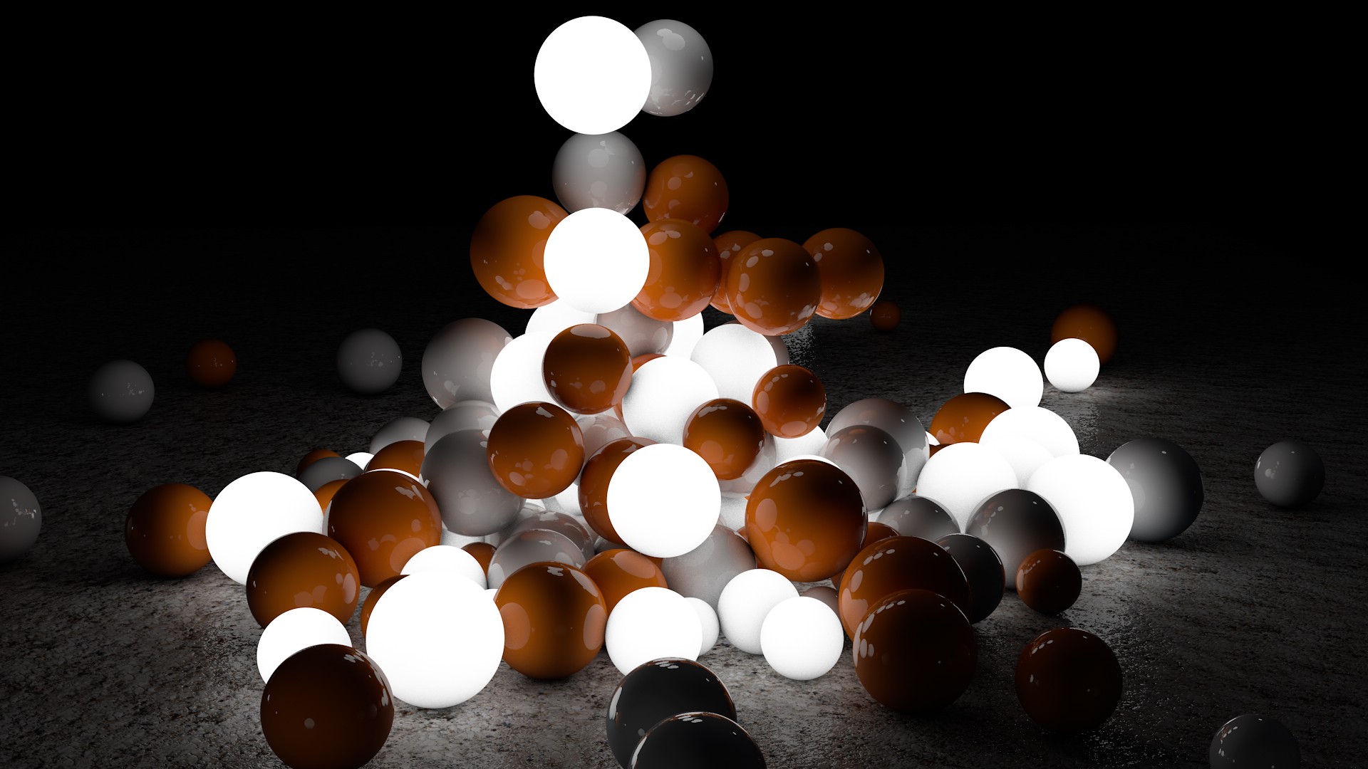 Description: A bunch of balls are scattered around a black background with white lights on them and a black background with a white light.