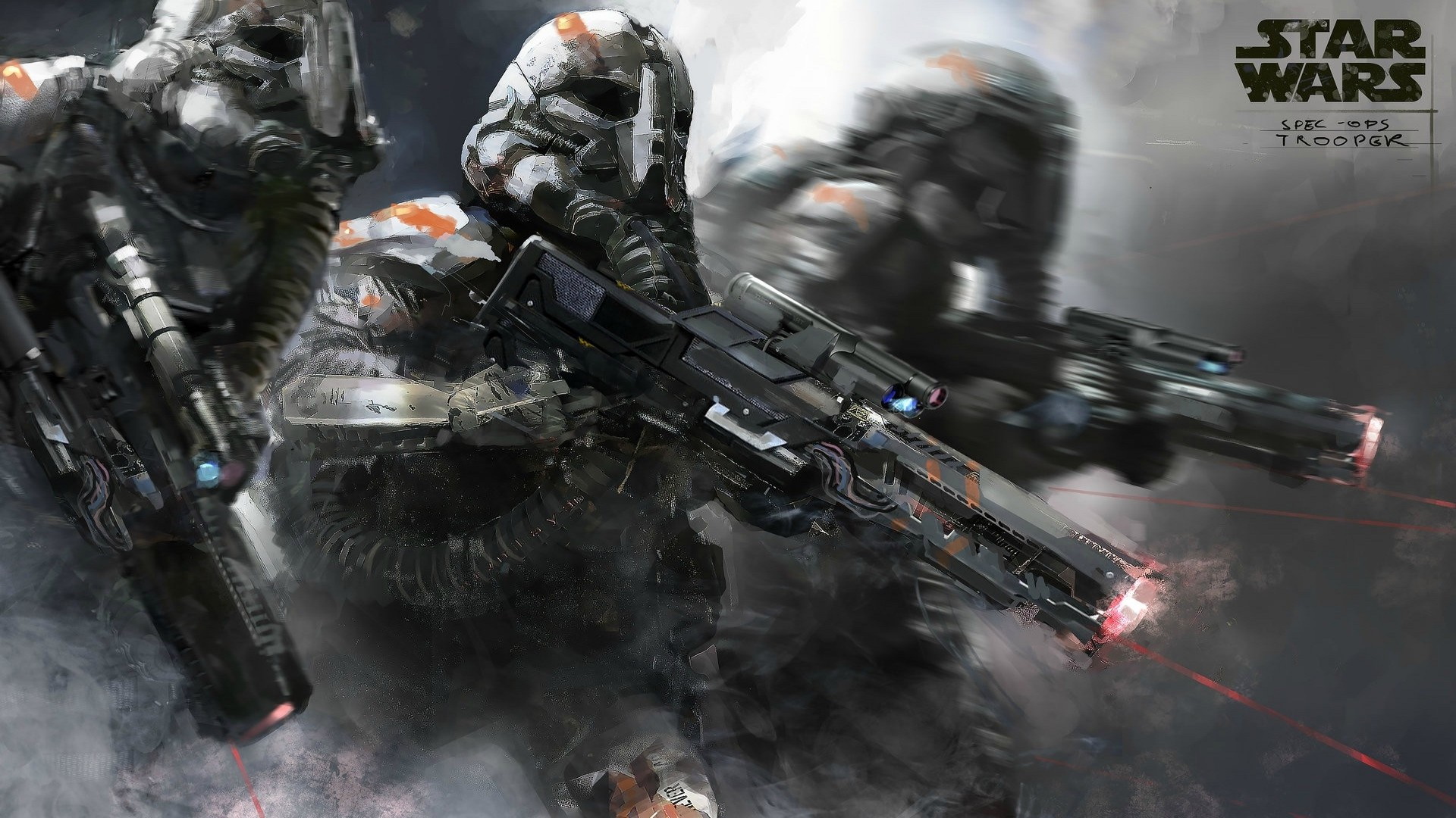 Description: A couple of sci - filths are fighting in a space station environment with smoke and fog behind them.