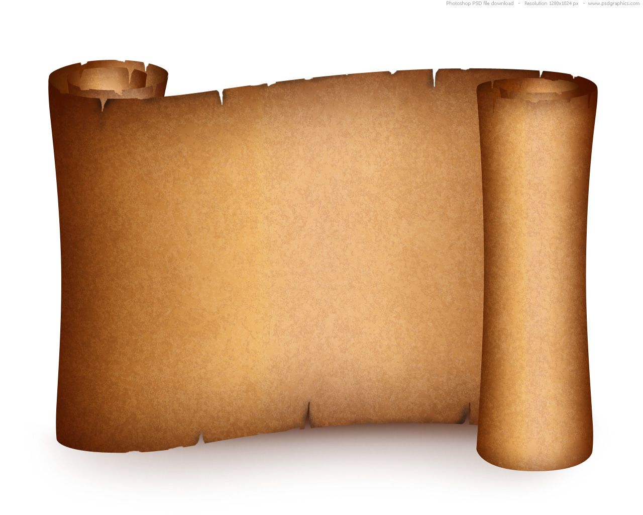 Description: A scroll with a hole in the middle of it and a piece of paper on top of it that is torn.