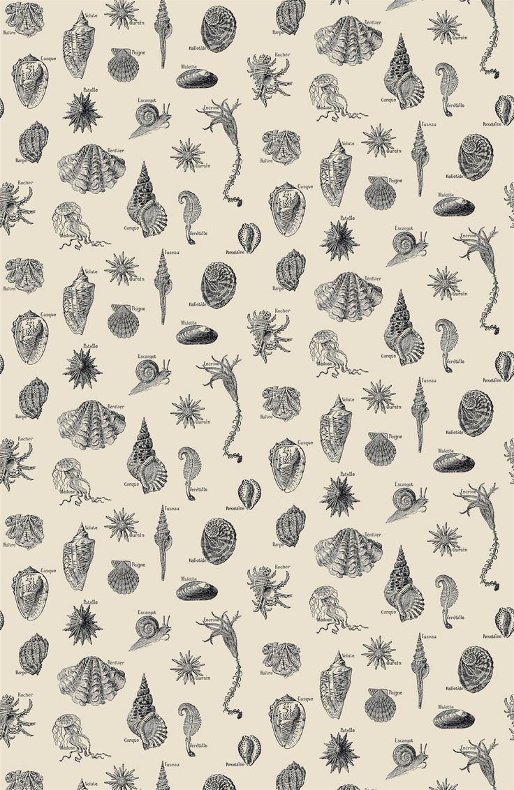 Description: A pattern of sea animals on a white background with black ink on paper.