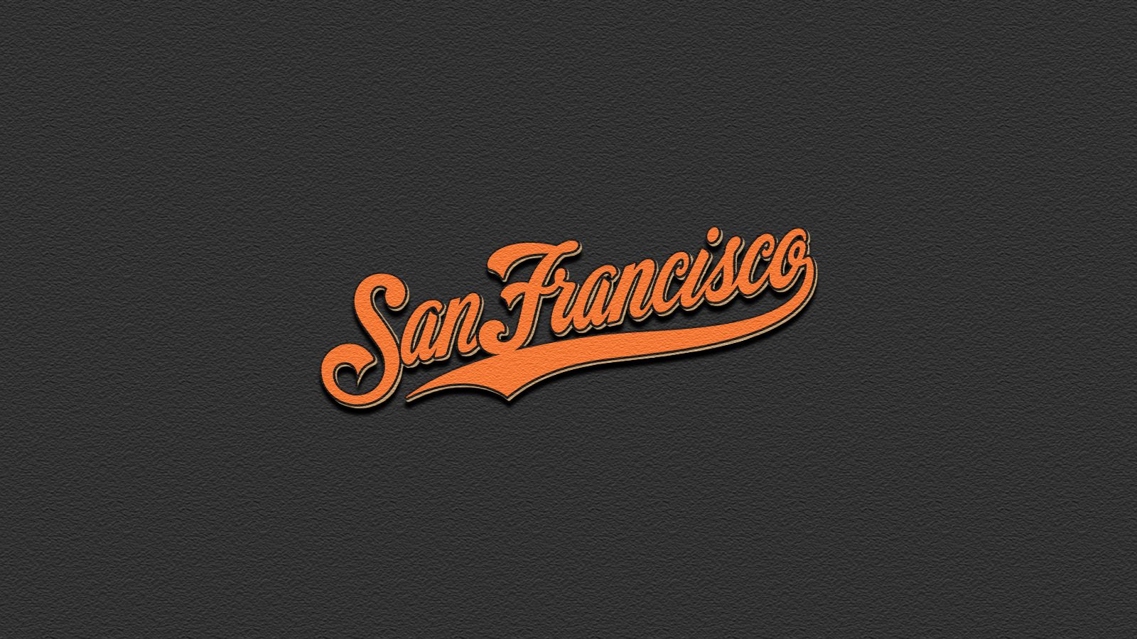 Description: A san francisco baseball team logo on a black background with orange lettering and a black background with a white and orange logo.