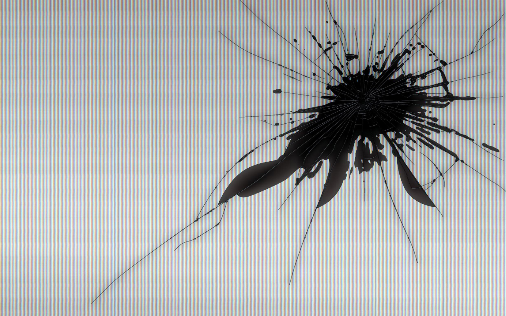 Description: A broken glass with a black and white background and a black and white design on it that has been shattered.