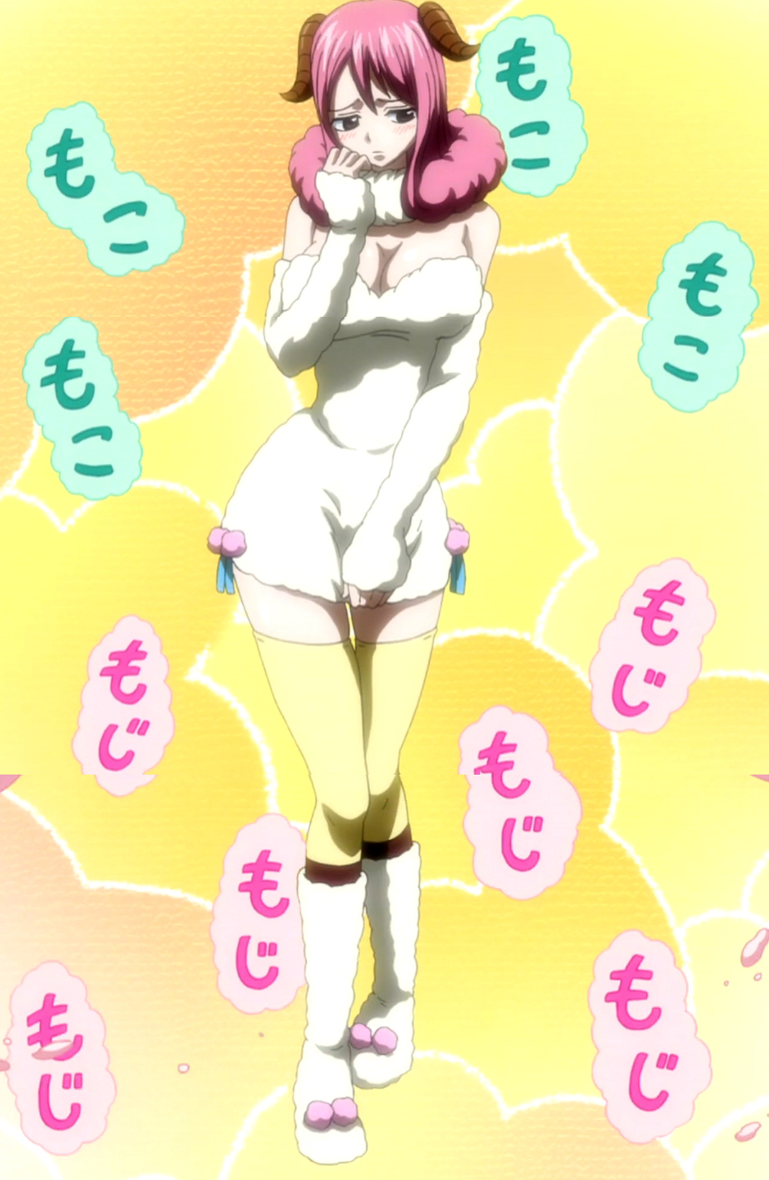 Description: A woman in a short skirt and boots standing in front of a yellow background with japanese characters on it.