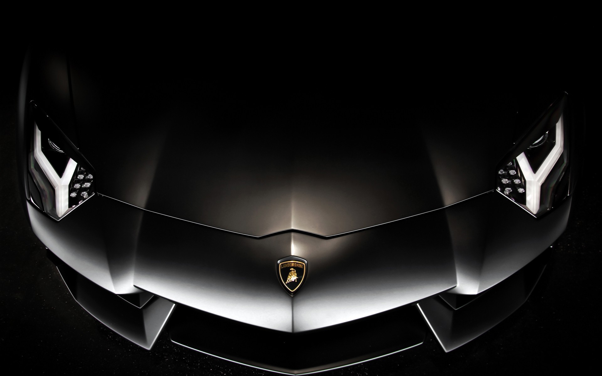 Description: A close up of a shiny silver sports car with a black background and a black background with a white stripe.
