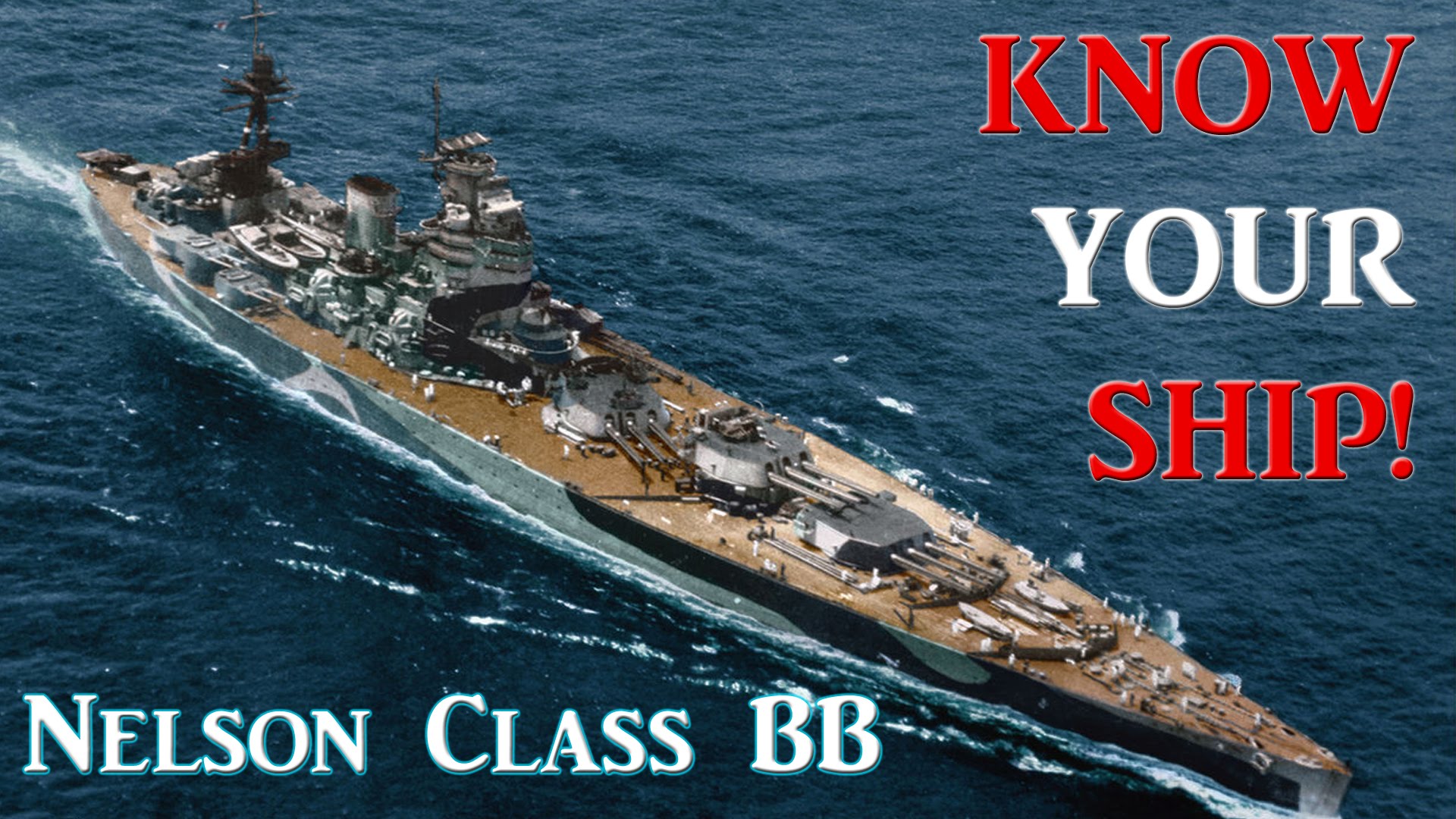 Description: A ship in the ocean with a caption that reads know your ship nelson class bb is in the background.