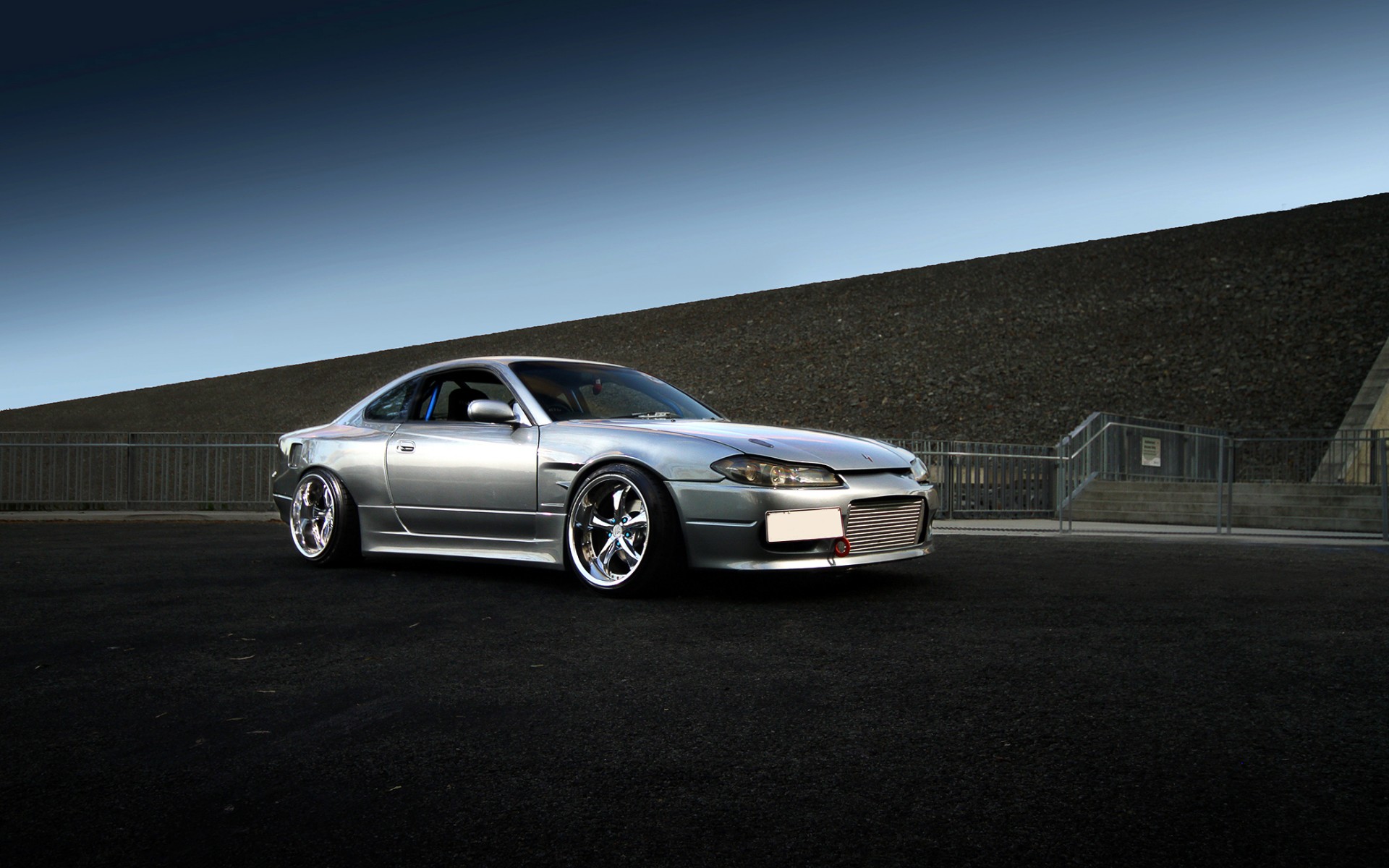 Description: A silver car parked in a parking lot next to a fence and a building with a steeple in the background.