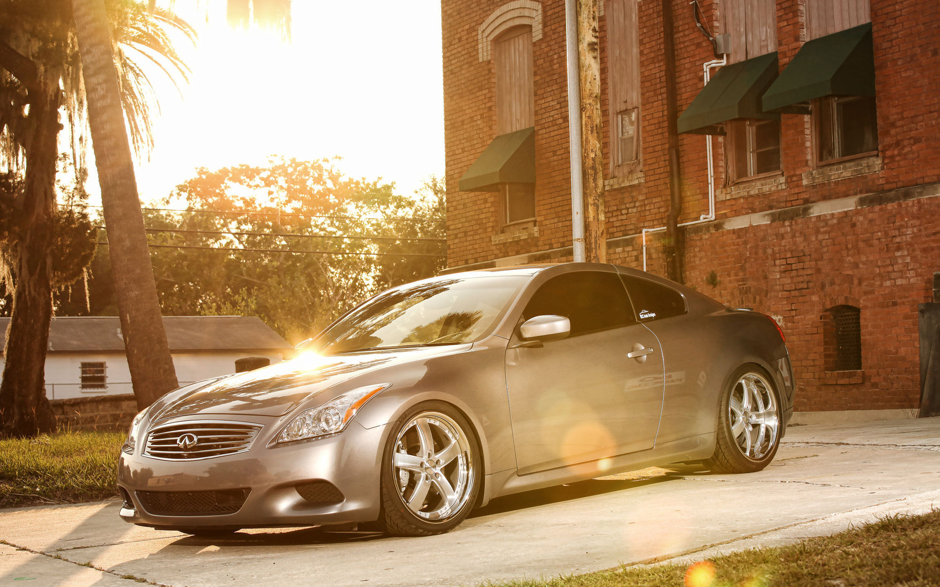 Description: A silver car parked on the side of a road near a building with a palm tree in the background.