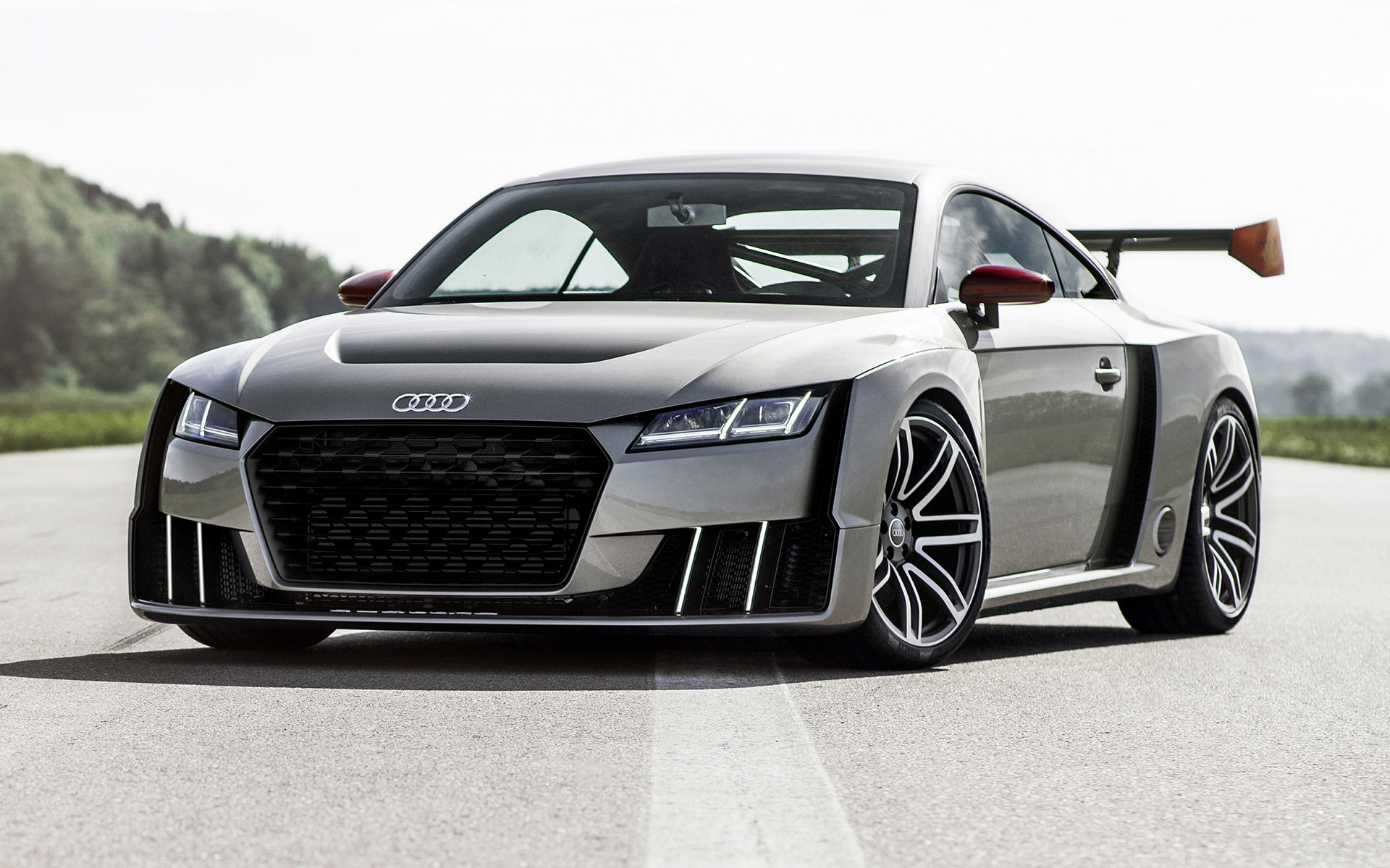 Description: A silver car is parked on the side of the road with a surfboard on top of it's roof.