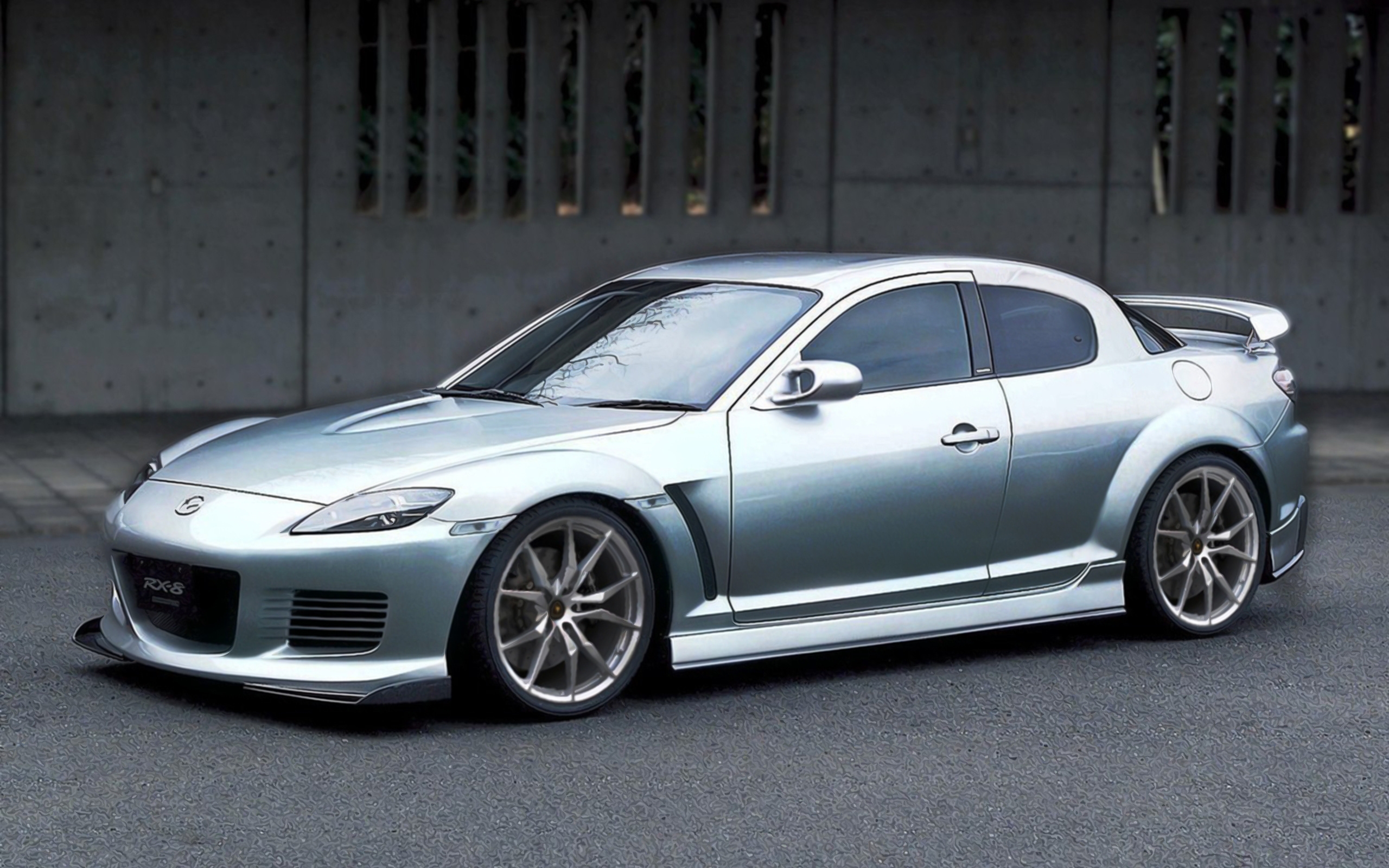 Description: A silver sports car parked in front of a building with a parking meter on the side of it's side.