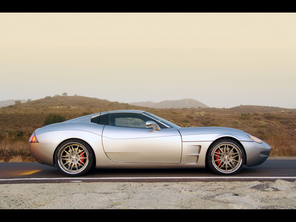 Description: A silver sports car driving down a road near a hill side area with a mountain in the background and a sky filled with clouds.