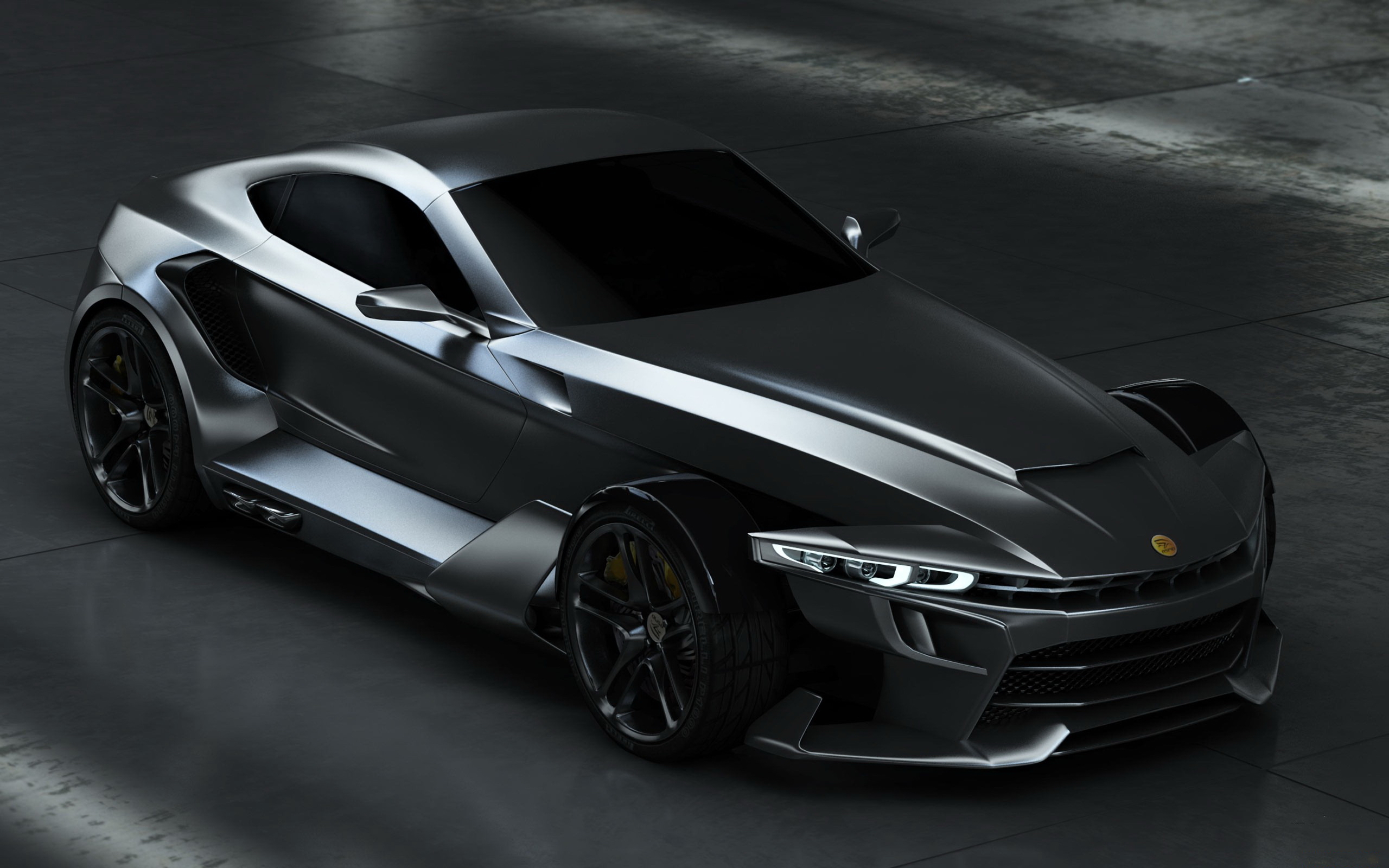 Description: A silver sports car is shown from above on a dark background with a shadow of the car on the ground.