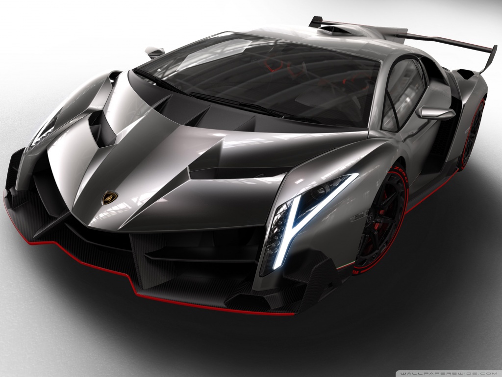 Description: A silver sports car with red accents on the front of it's body and a hood up on the front.