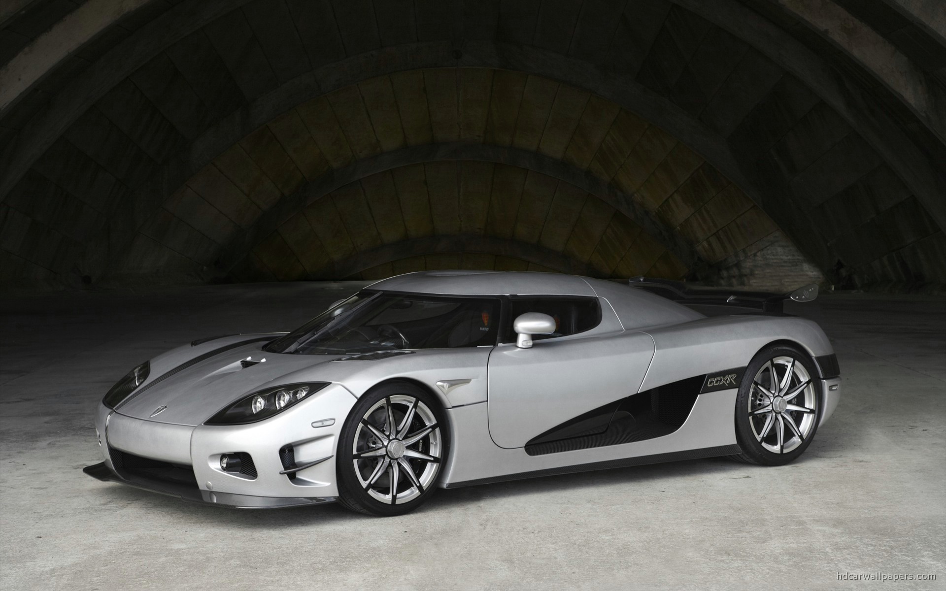 Description: A silver sports car parked in a tunnel with a roof down and a black top on the front of it.