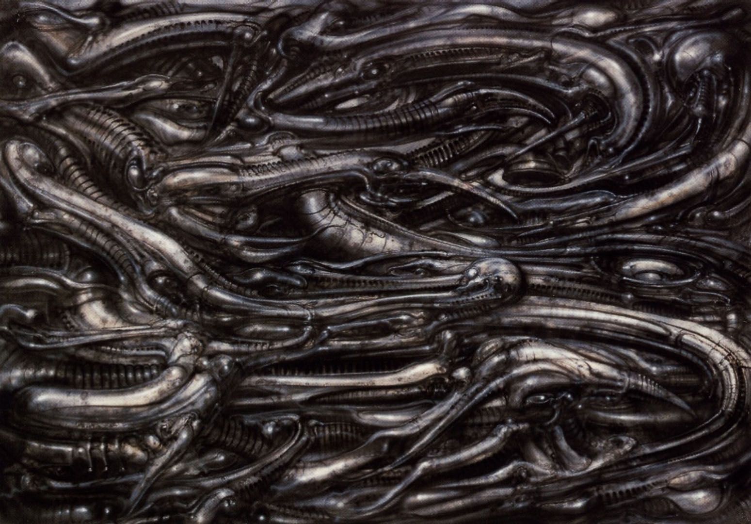 Description: A large group of silver worms in a black box with a white background and a black border around it.