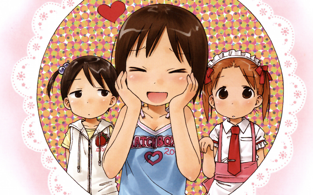 Description: A couple of girls standing next to each other with a heart on their forehead and a girl covering her face.
