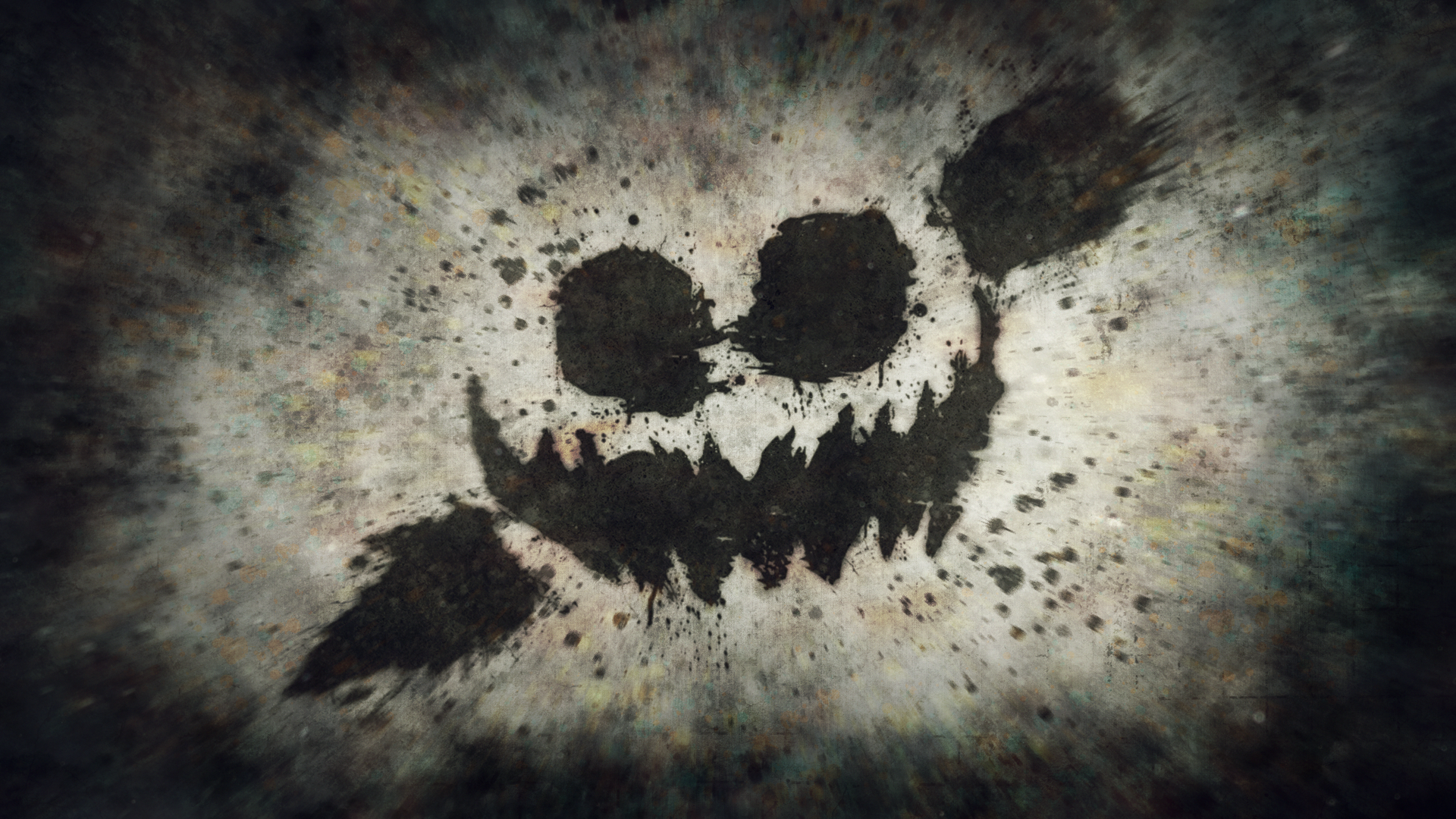 Description: A skull with a beard and a beard on it's face is shown in a dark background with a white spot.