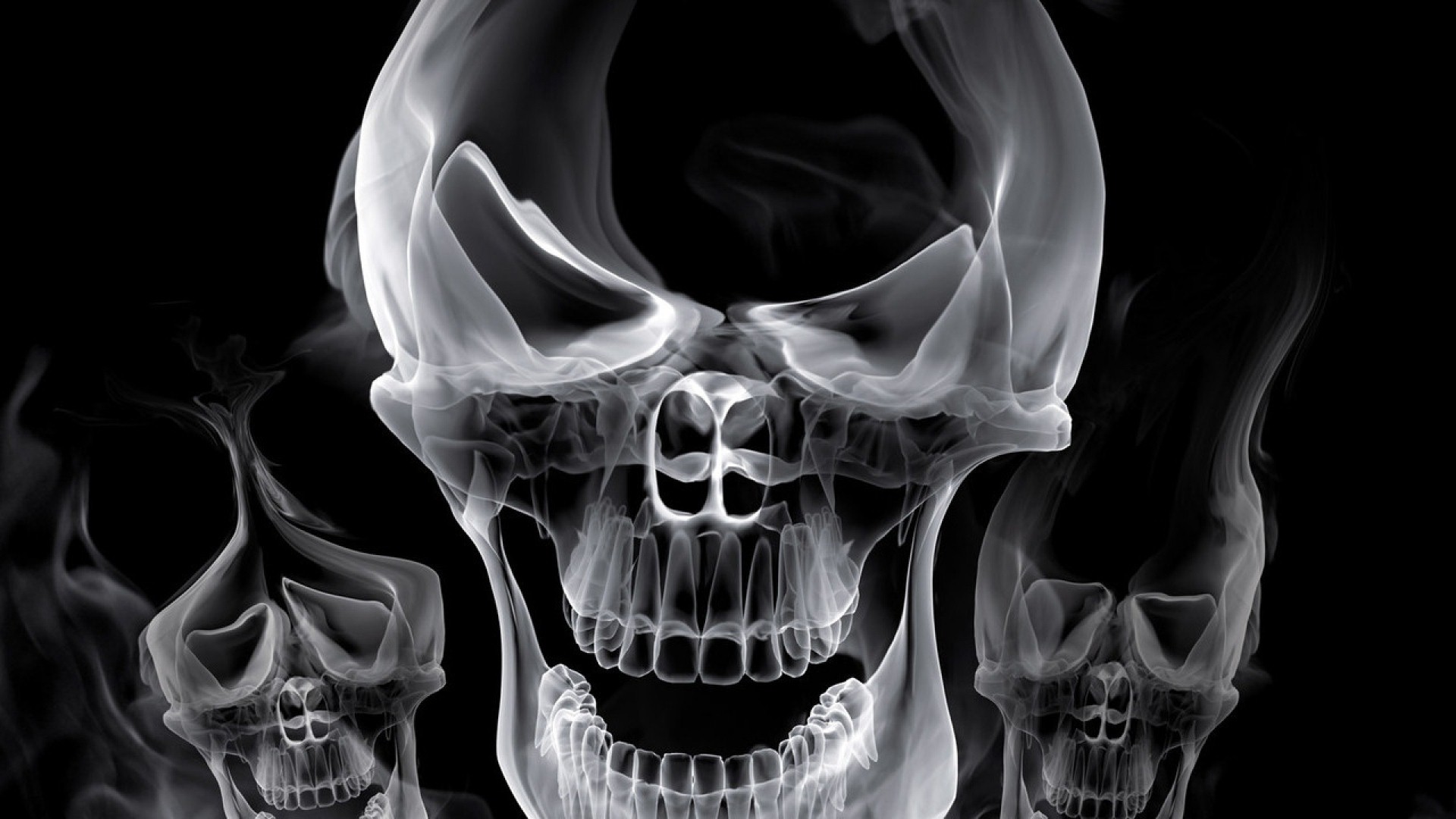 Description: A skull with a cigarette in its mouth and smoke coming out of it's mouth.