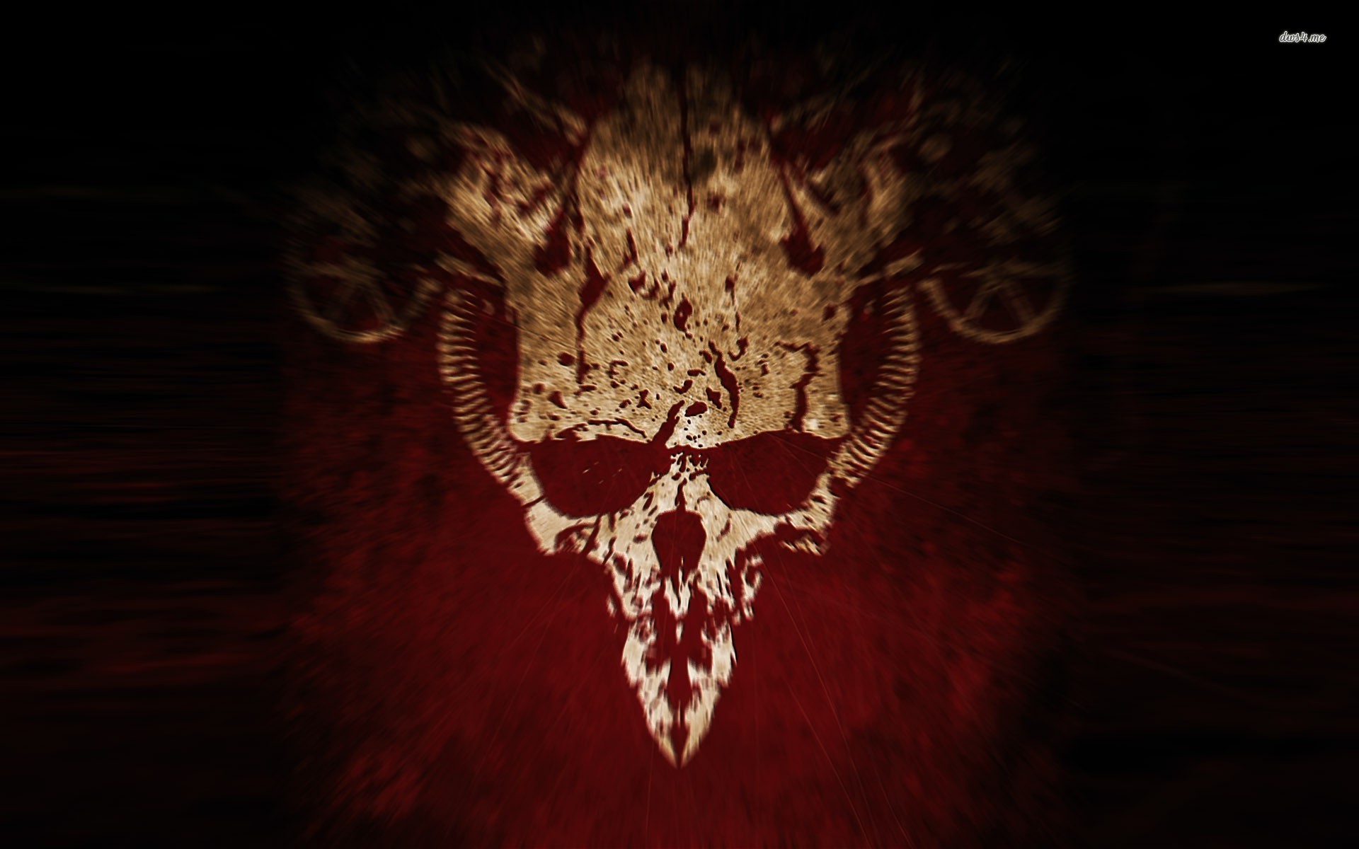 Description: A skull with sunglasses on it is shown in the dark with a red background and a white skull on the right side of the image.