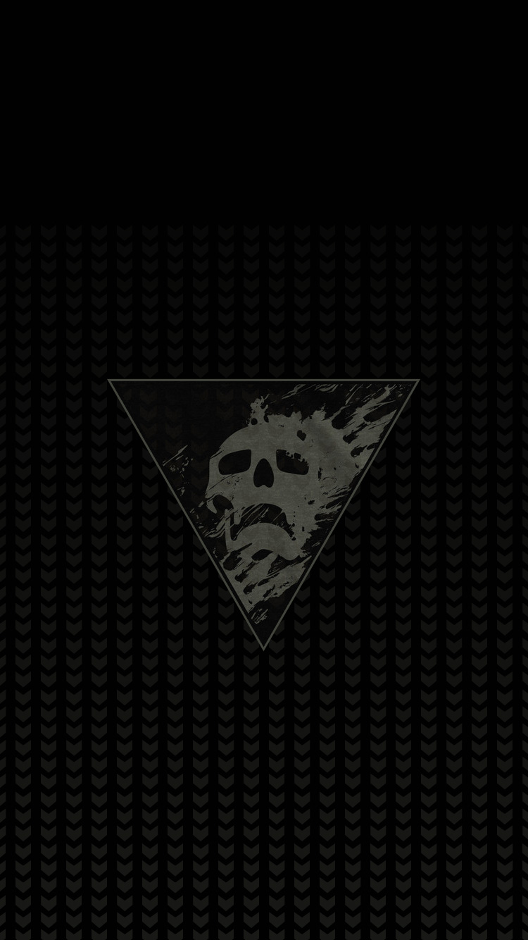 Description: A black and white photo of a skull in a triangle with a black background and a black and white pattern.