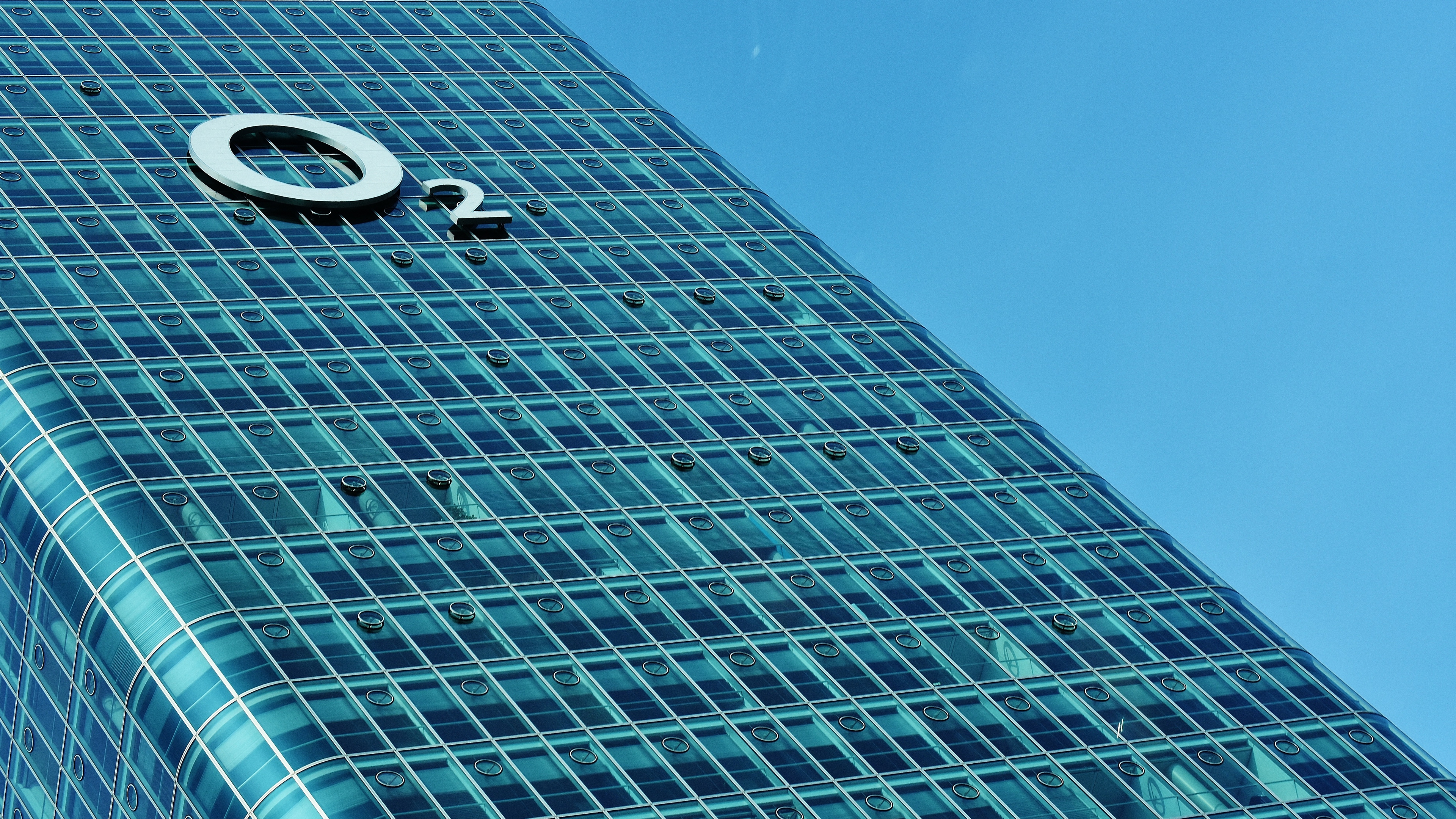 Description: A tall building with a large metal letter on it's side and a sky background with a blue sky.