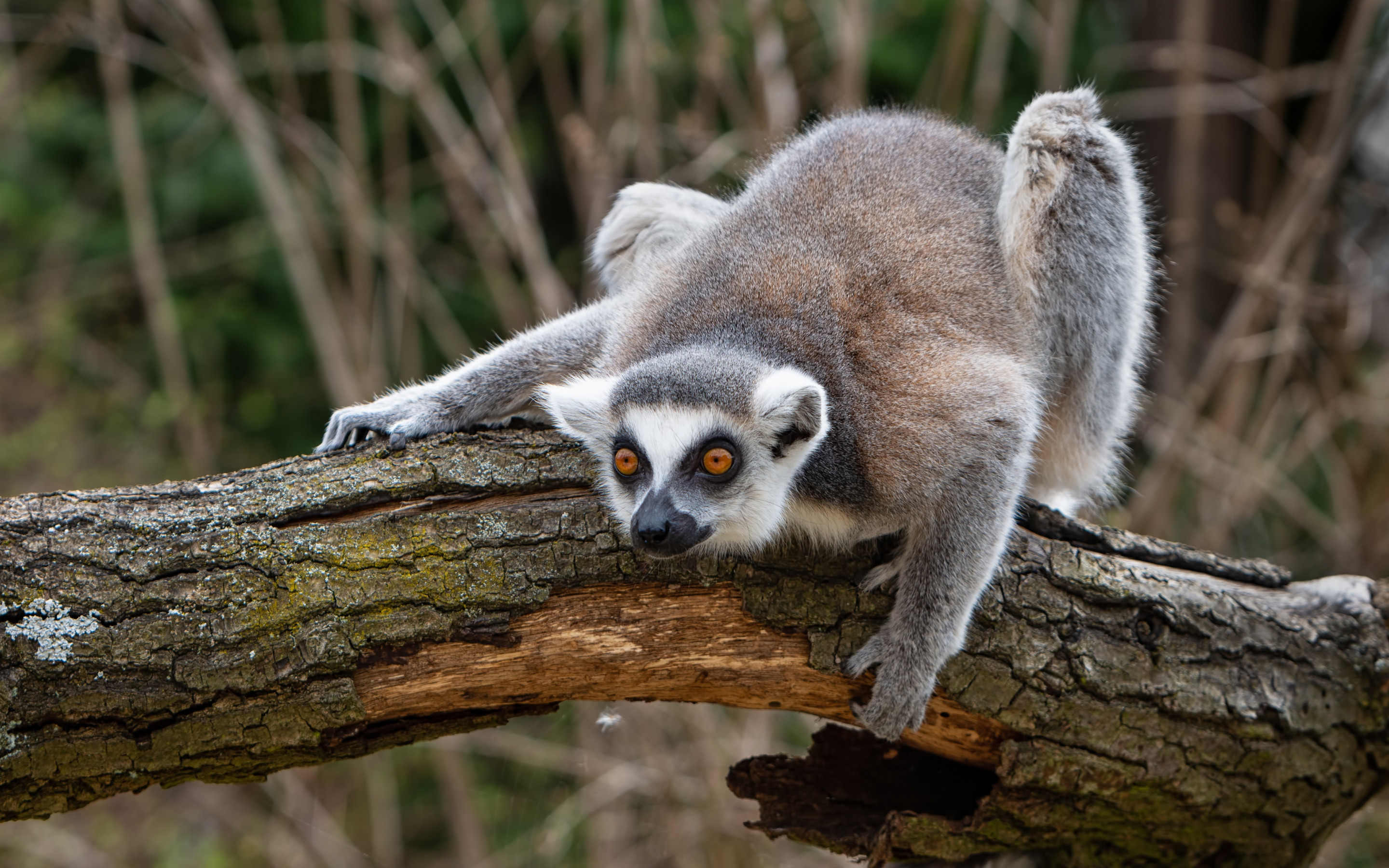 Description: A small animal is sitting on a tree branch and looking at the camera with a curious look on its face.