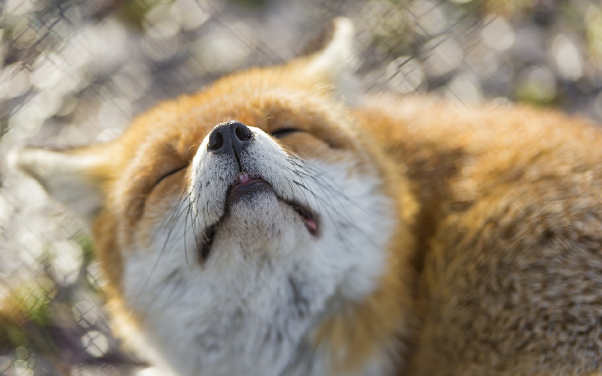Description: A small brown and white dog laying on top of a field of grass and dirt next to a fence.