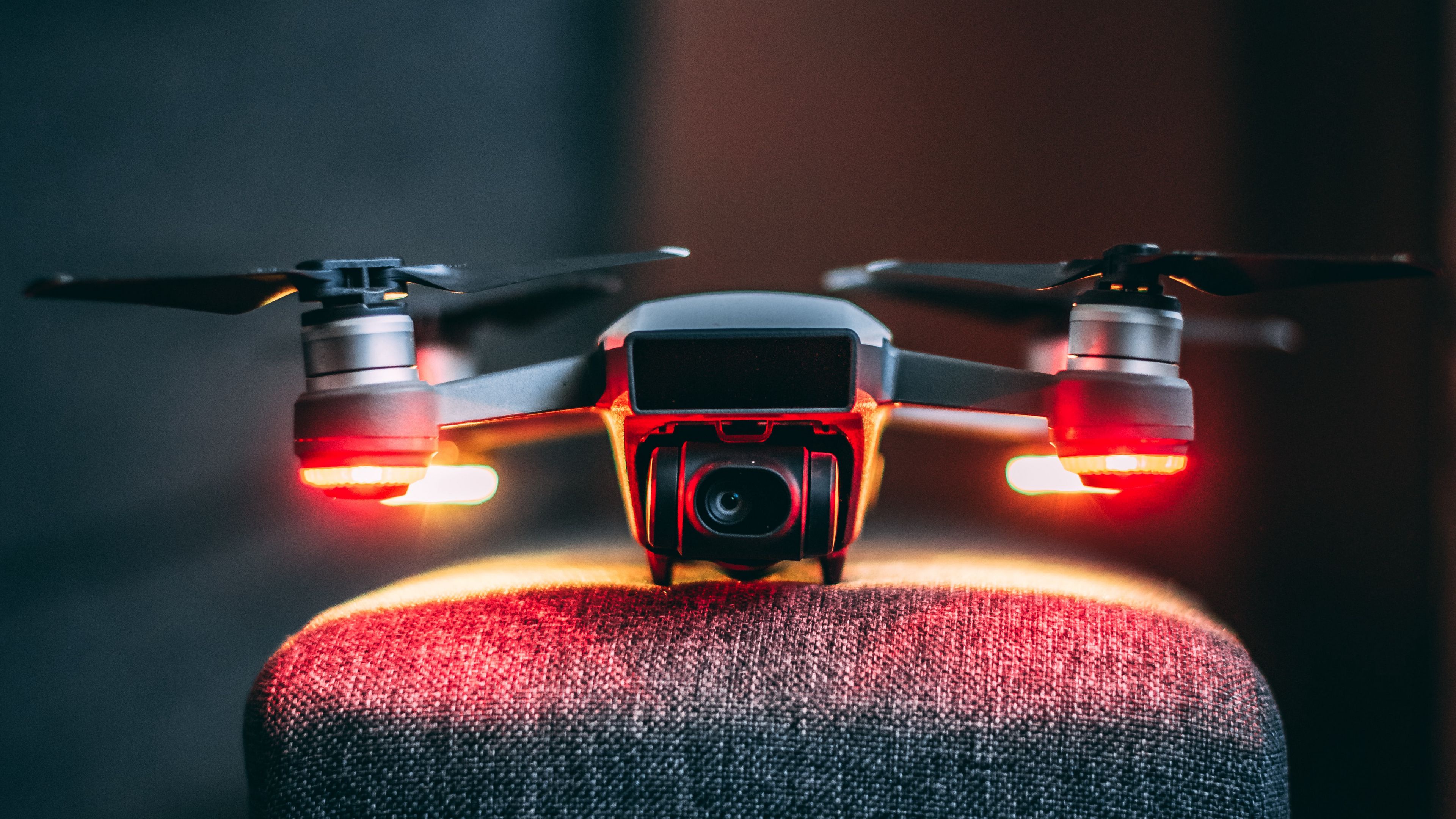 Description: A small camera mounted on top of a chair with two lights on it's sides and a camera attached to the back of the chair.