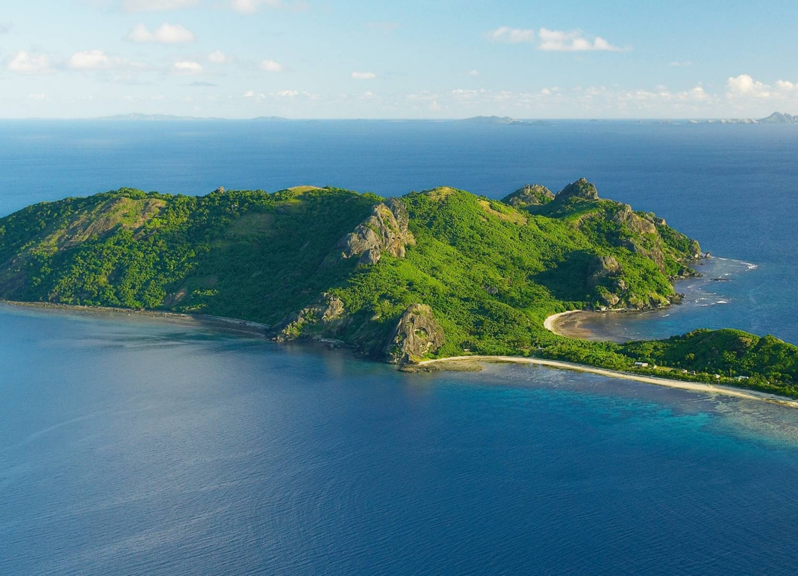 Description: A small island in the middle of the ocean with a sandy beach on the other side of it and a few islands in the middle.