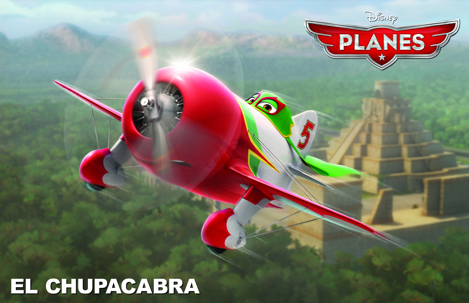 Description: A small red and green plane flying over a forest filled with trees and a castle in the background with a plane in the air.