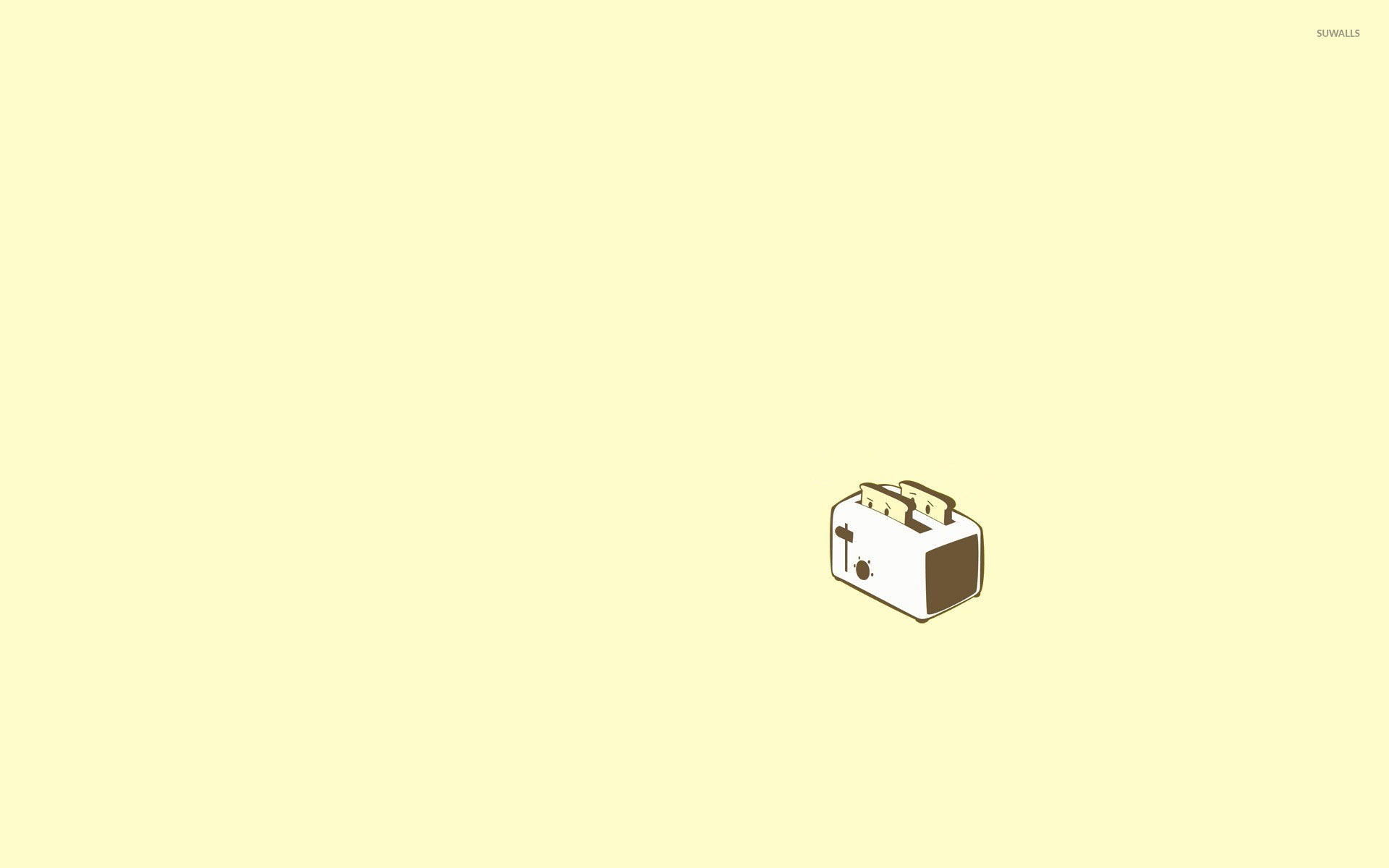 Description: A small white box with a brown handle on a yellow background with a small brown handle on the top of it.