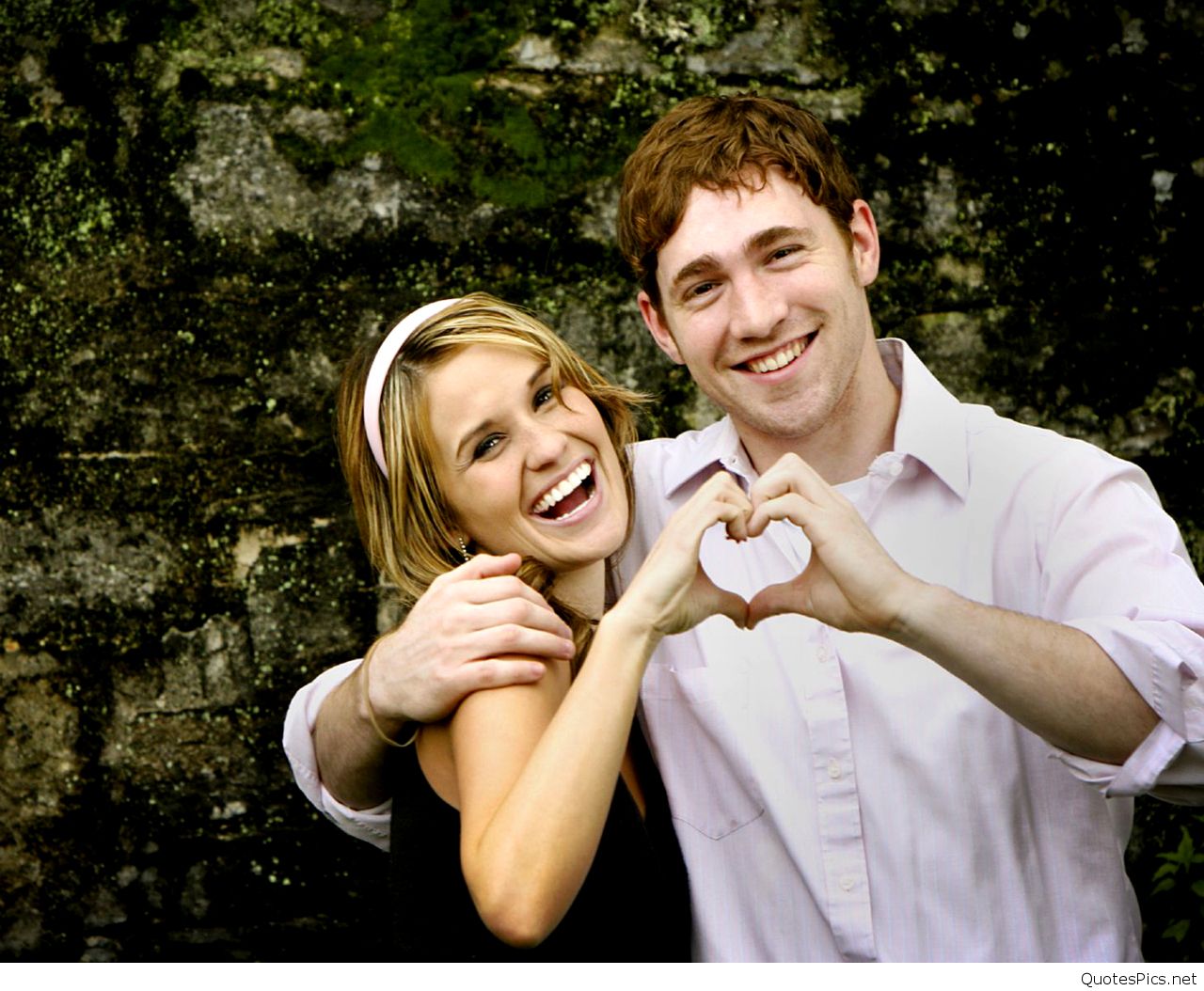 Description: A man and woman are posing for a picture together in front of a rock wall and smiling at the camera.