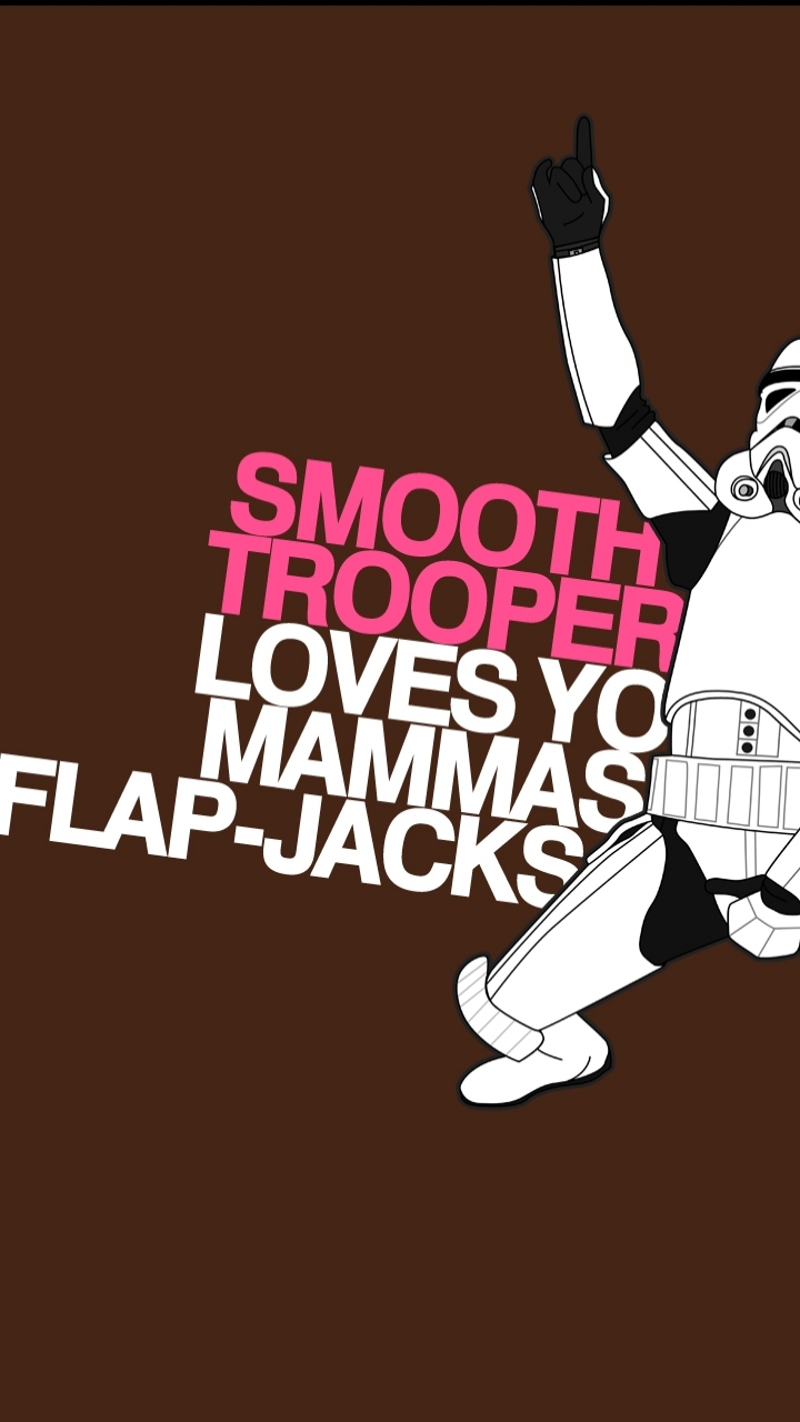 Description: A star wars poster with a storm trooper on it's back and a text that reads smooth trooper loves you.