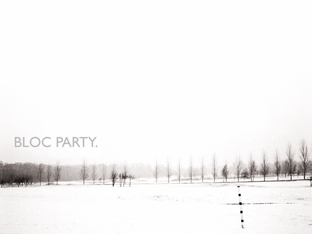 Description: A snow covered field with trees and a sky background with a block party logo on it in the foreground.