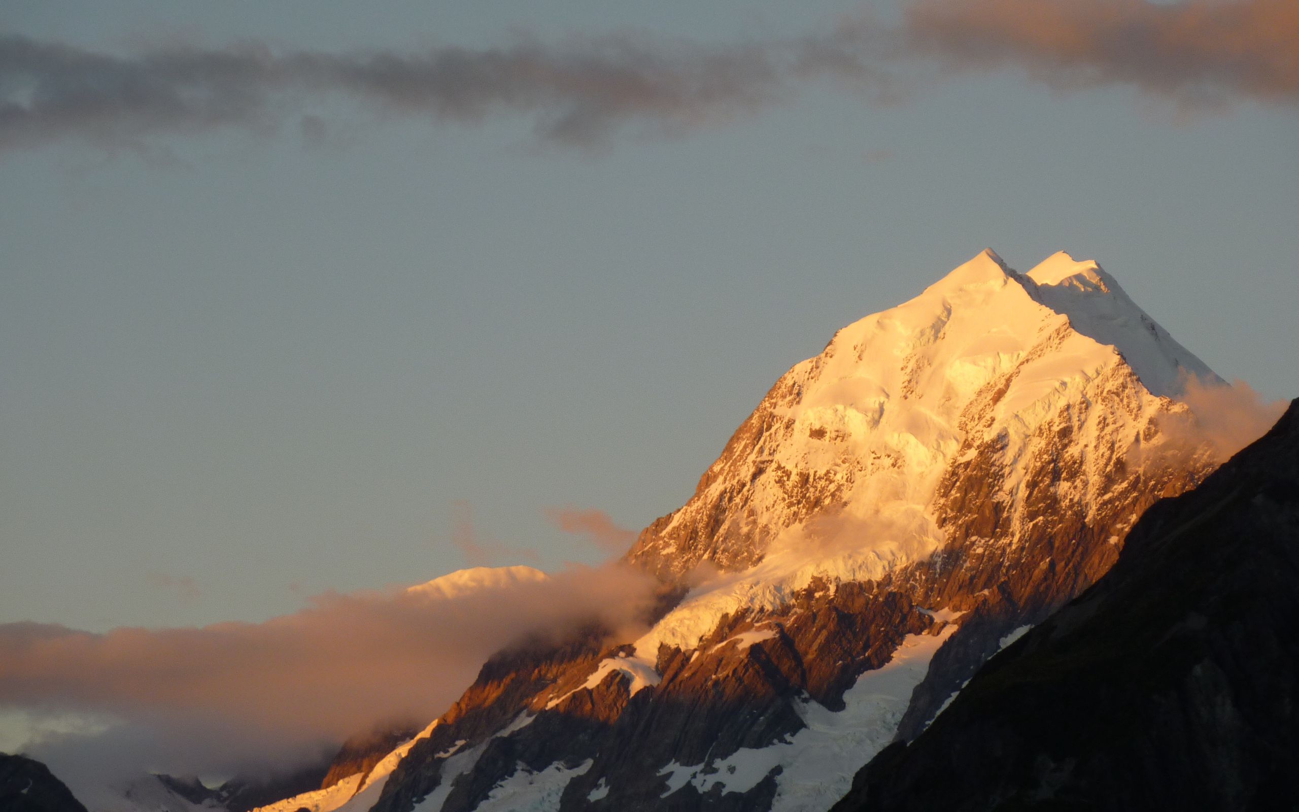 Description: A snow covered mountain with clouds in the sky above it and a few clouds in the sky above it.