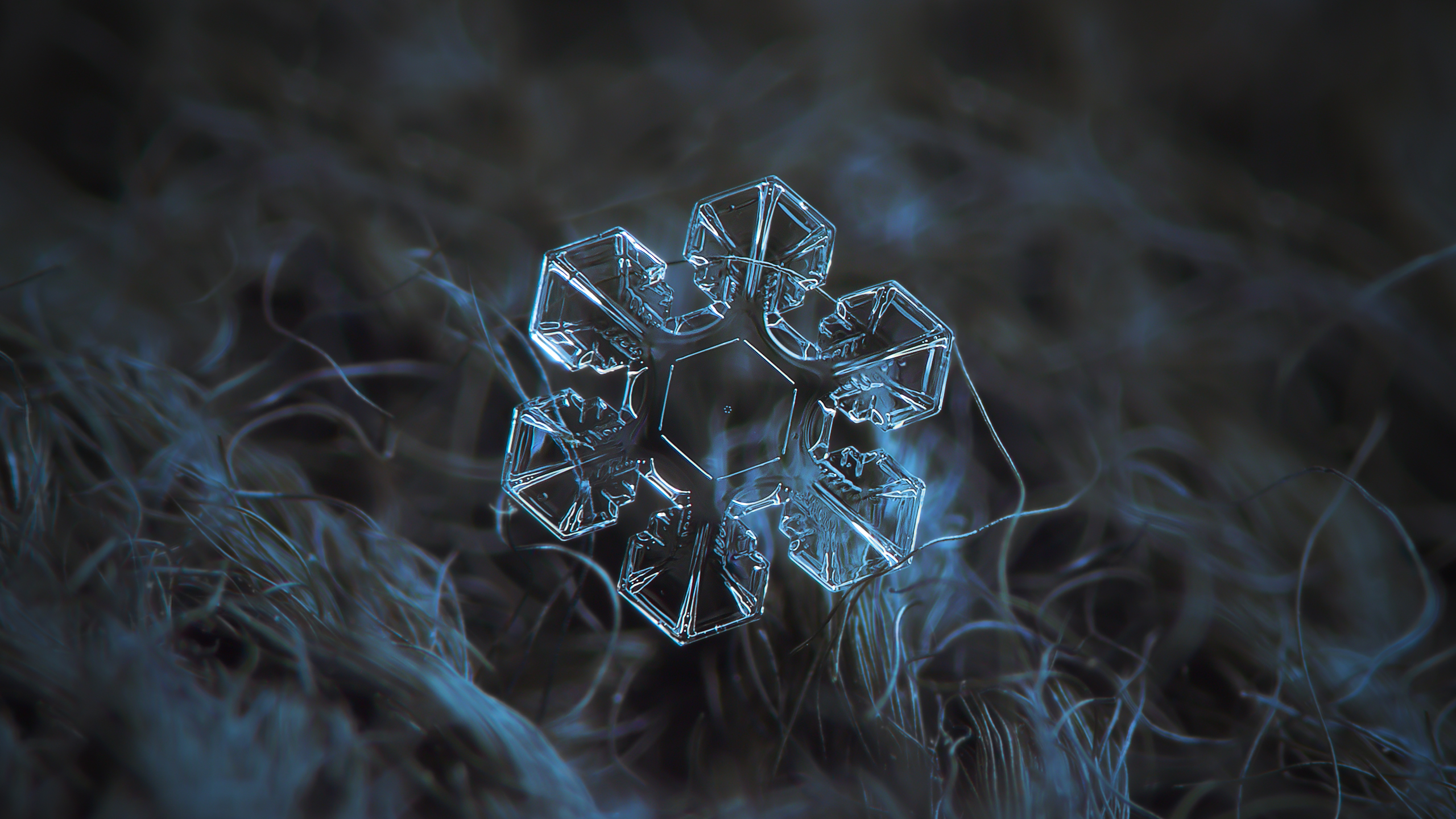 Description: A snowflake is shown in the middle of a field of grass and grass blades.