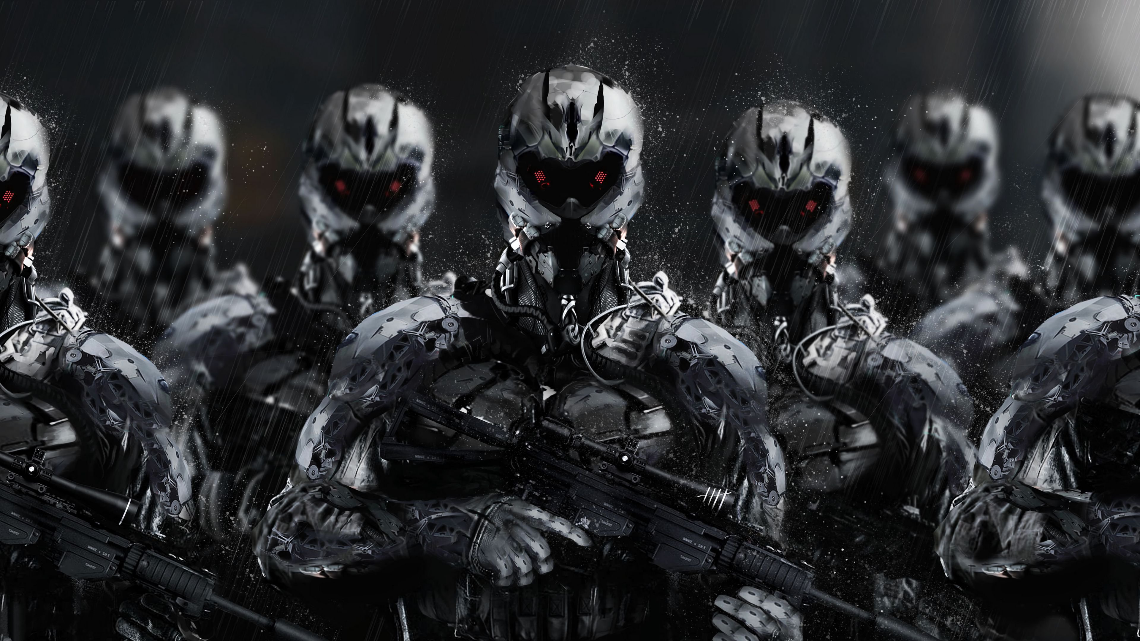 Description: A group of soldiers with guns in their hands and wearing helmets and holding guns in their hands.