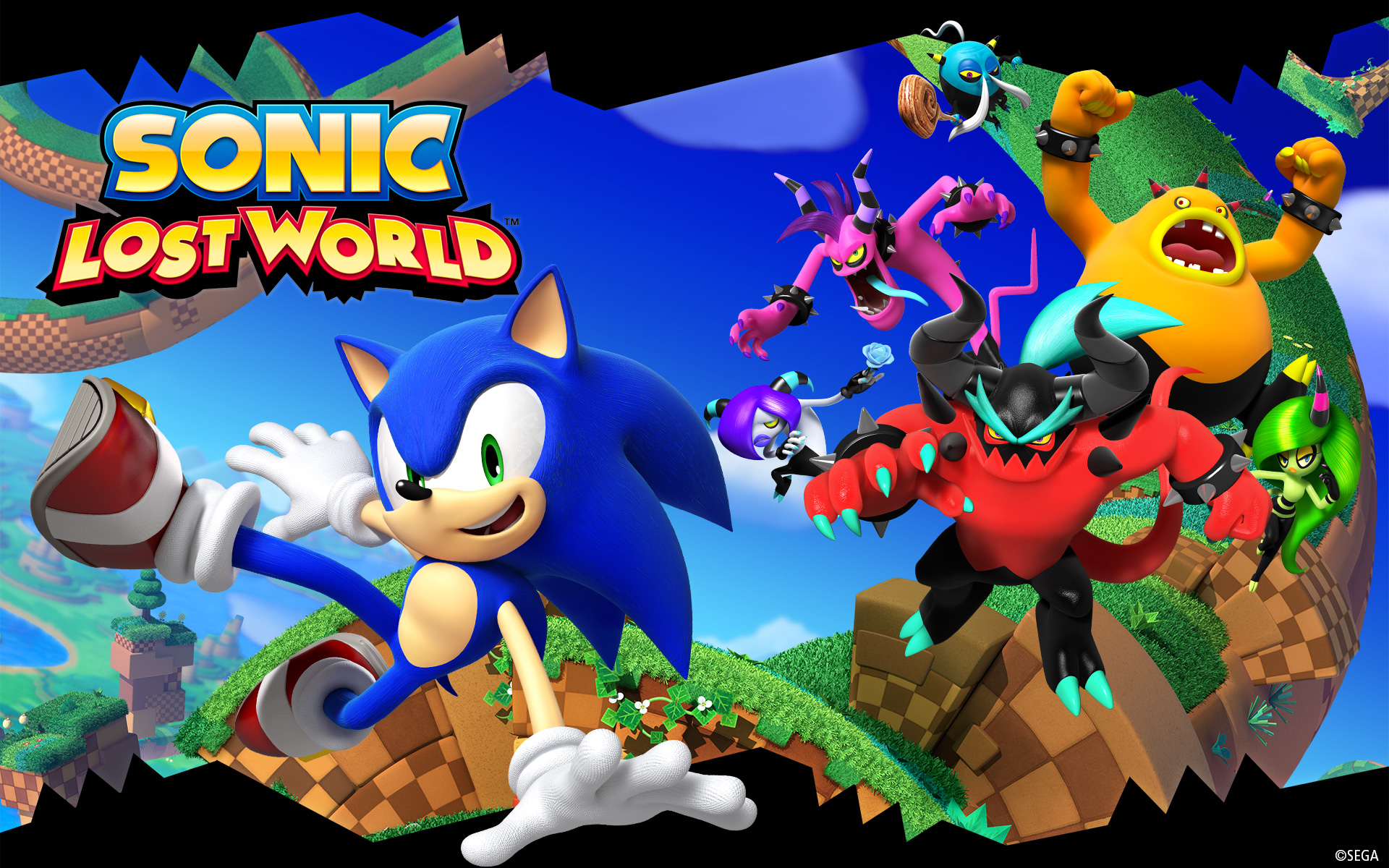 Description: A cartoon of a sonic the hedgehog character in a game with other characters in the background and a background.