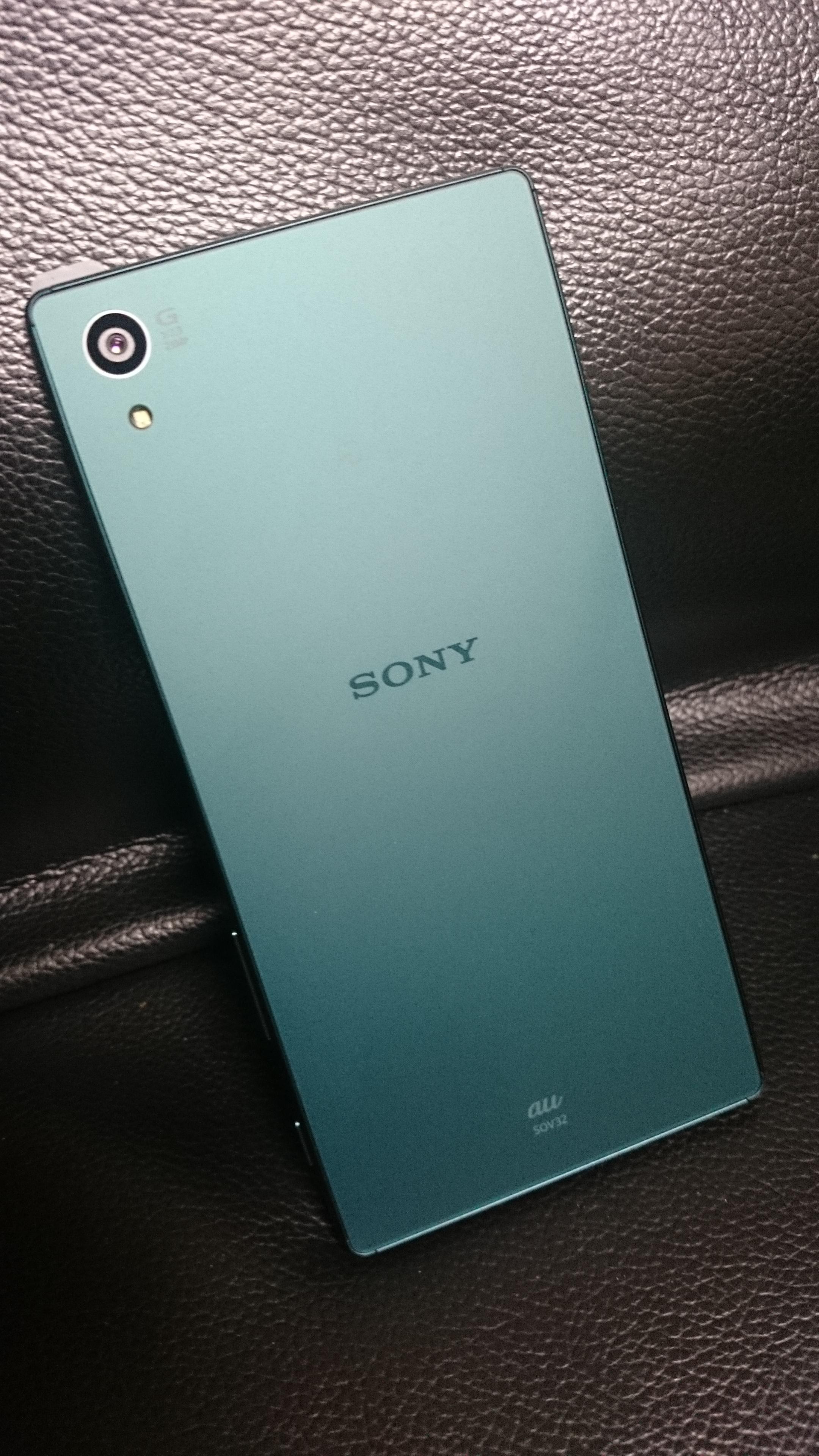 Description: A sony tablet sitting on a leather surface with a black bag behind it and a black leather seat behind it.